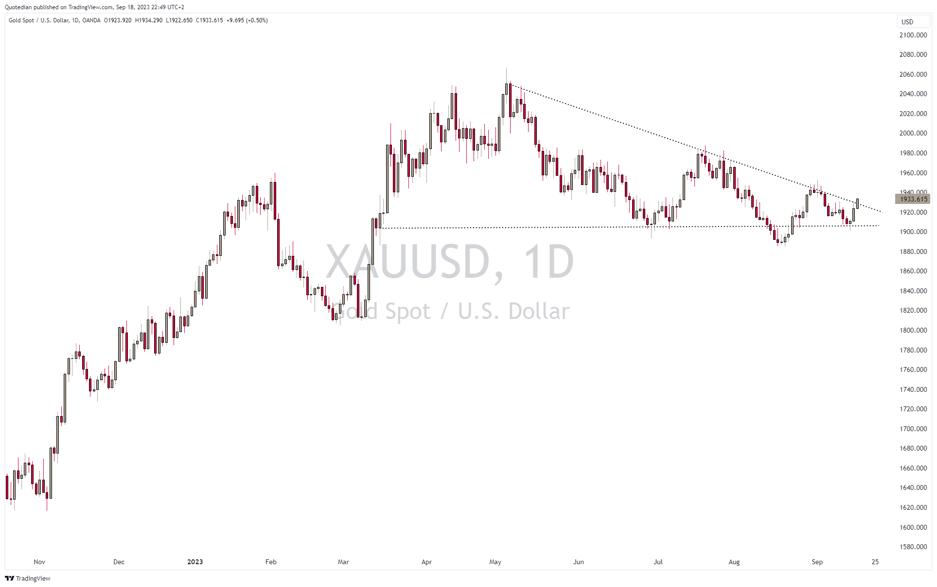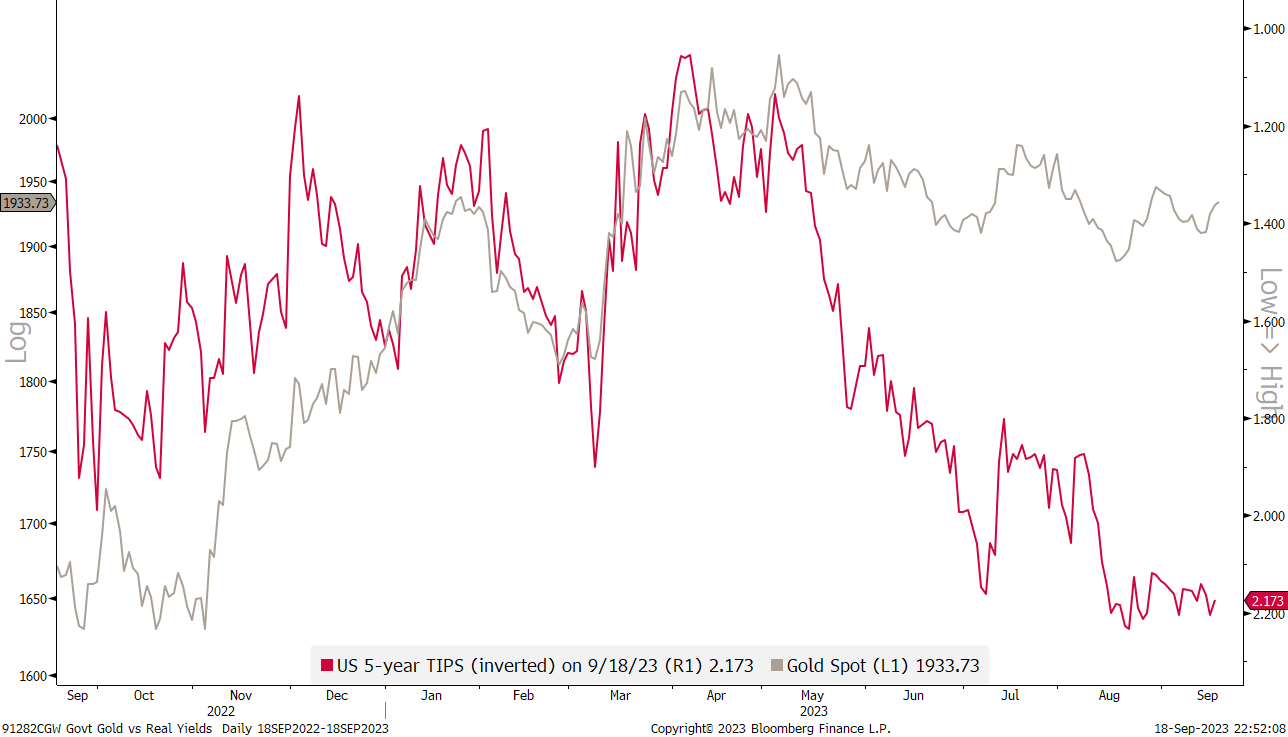 Thinking about it, even though the past months have been frustrating to any gold bug, given the strength of the US Dollar and the sharp upmove in US real yields, the yellow metal has “hung on up there” with dignity: