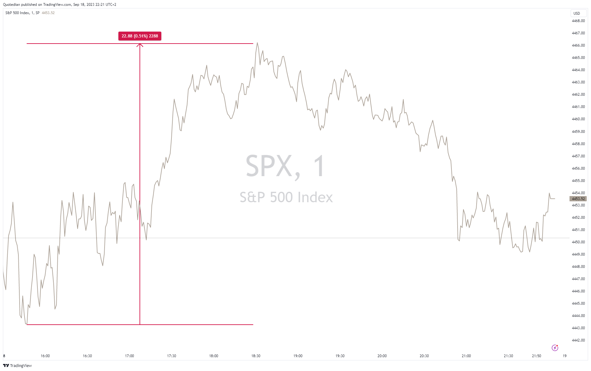 The biggest intraday move for the S&P 500 came from the intraday lows shortly after the opening bell to the intraday highs around NY lunchtime and was only 0.50%: