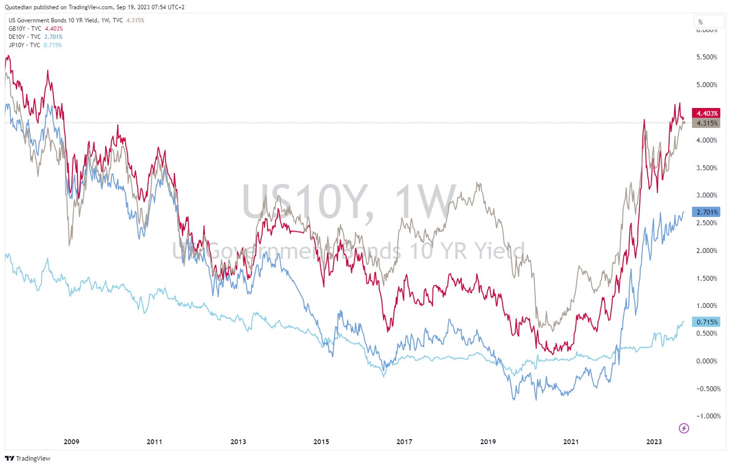 But let me put up the following chart of “yields around the globe”, which to me leaves little doubt where this is heading to: