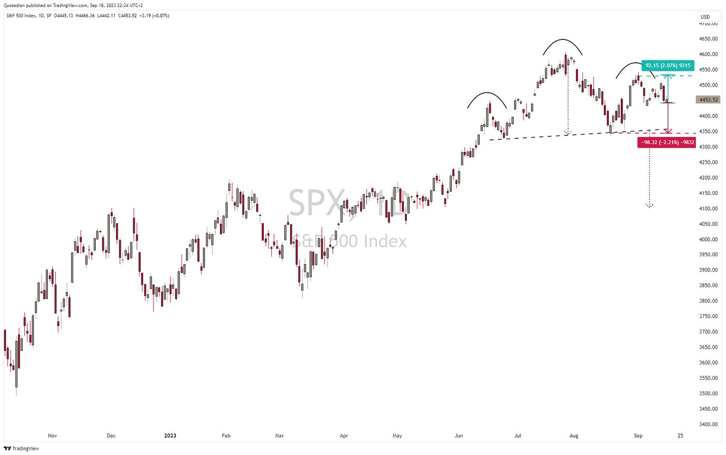 The move was so small it obviously did not move the needle on the daily chart, where the index continues to be stuck quite precisely midway between our two lines in the sand:
