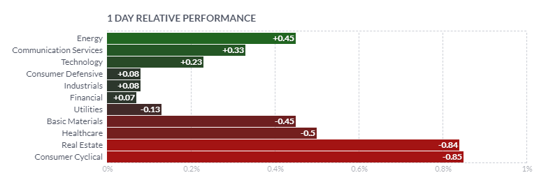 And guess what? The ratio of advancing to declining stocks was 1.15, i.e., extremely balanced.