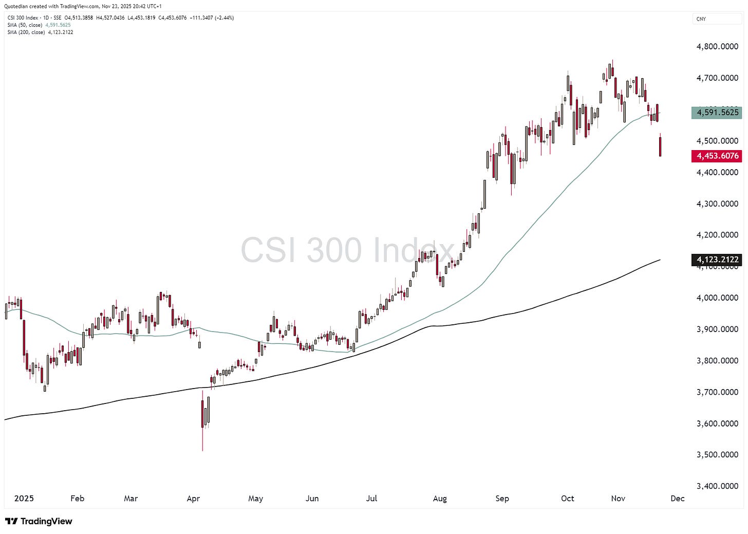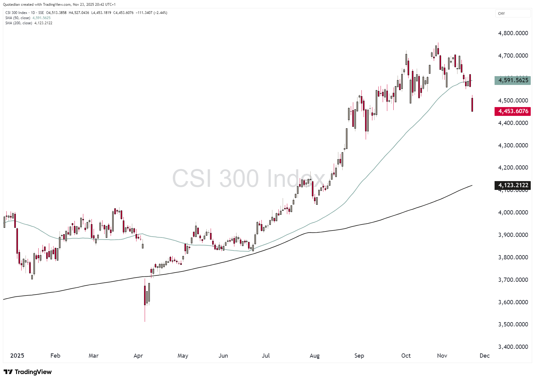Chinese stocks (CSI300) however, could be in for a spout of trouble: