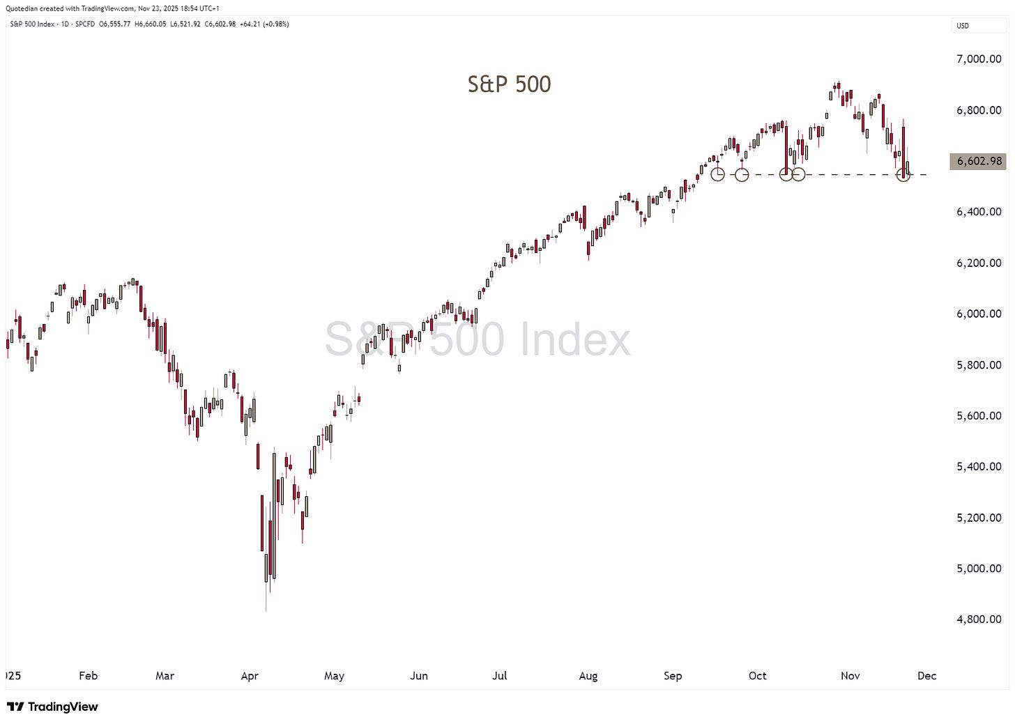 Technically, turning back to the S&P 500, the line in the sand at 6,550 is holding for now: