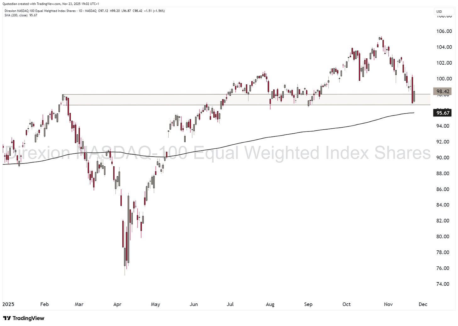 However, here’s the thing. The S&P 500 equal-weight index has already (more or less) achieved that feat last Thursday: