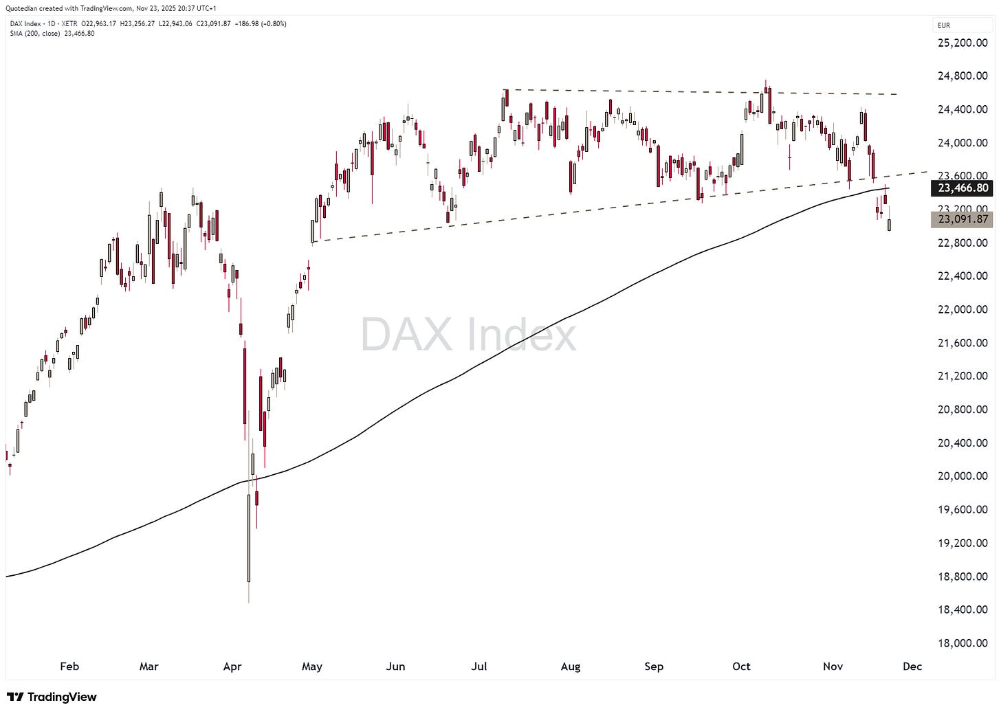 whilst one of the early star performers, Germany’s DAX, is falling apart on many levels: