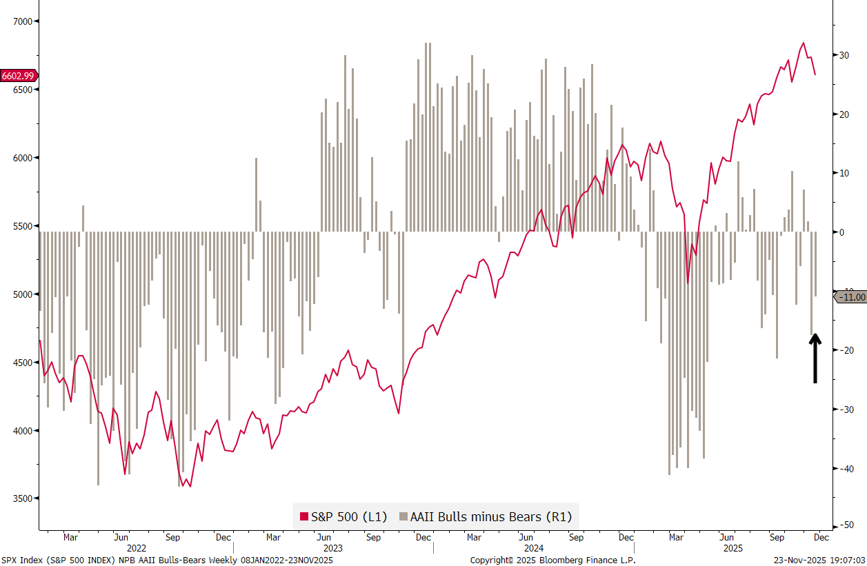 The AAII is not at negative extremes, but also negative enough to support an equity recovery: