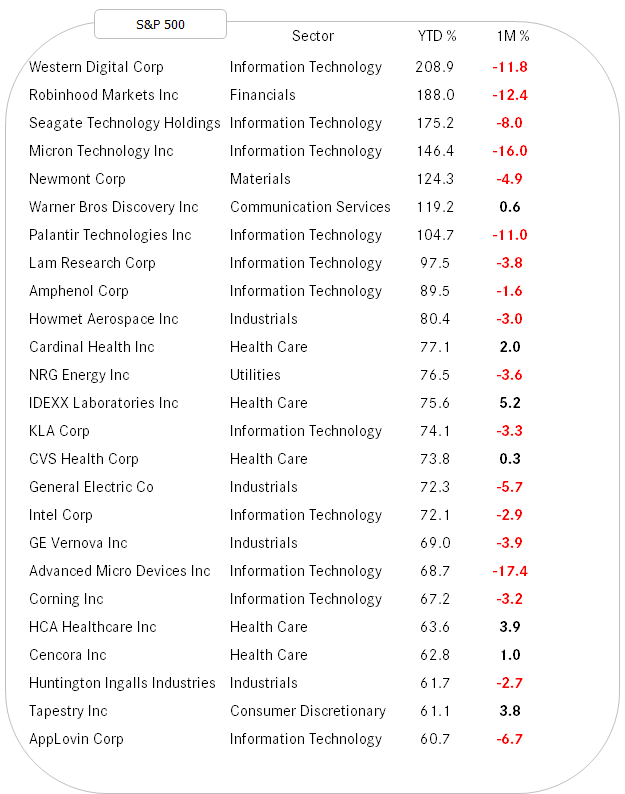 Checking the US table first, I would note that those who remain bullish have some great entry opportunities to the best performing stocks YTD now: