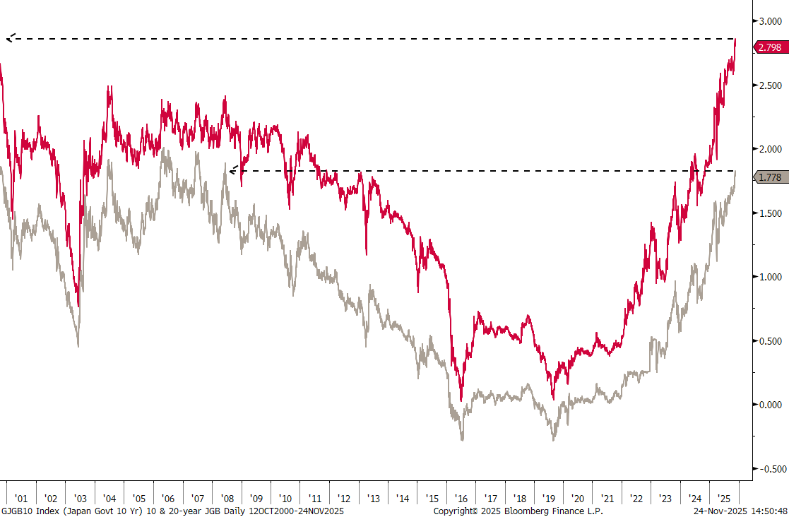 10-year JGB yields are hitting their highest levels since 2008, and make that since ‘forever’ for the 20-year version of the same Japanese Government Bond: