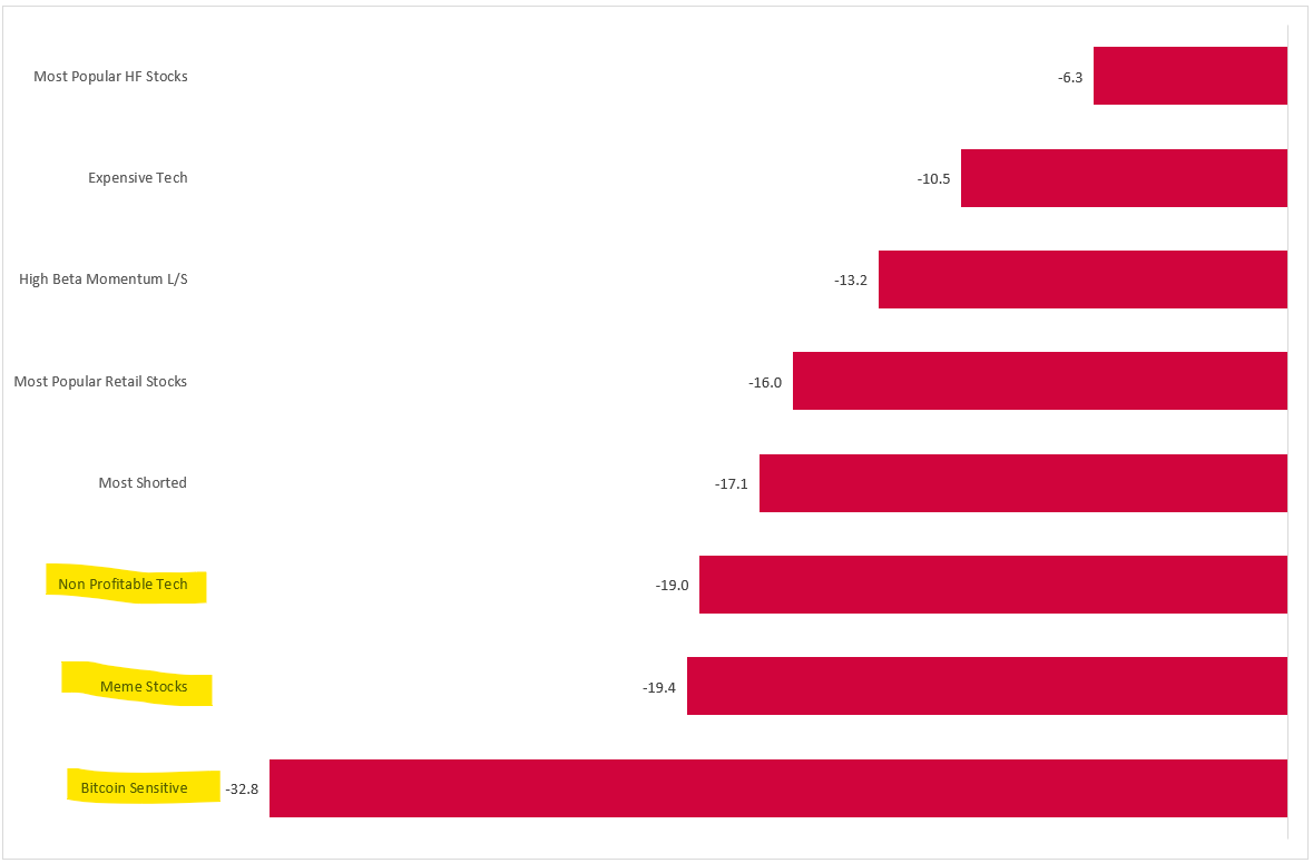 Especially the frothier parts of the markets have seen important reversal, since that late October top. Here are the month-to-date returns for some of those special ‘factors’: