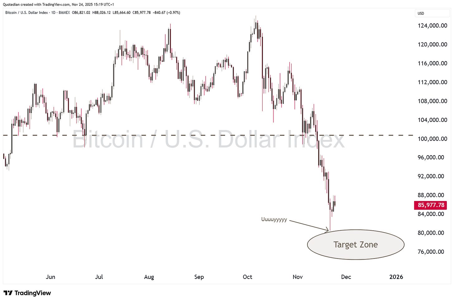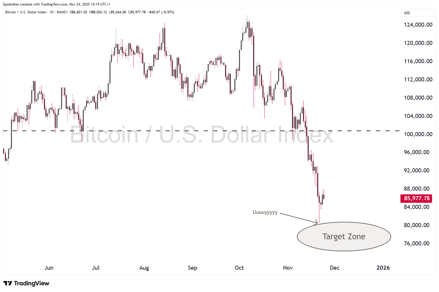 Zooming out on the same chart, a technical analyst may be inclined to attribute an additional 50% decline from the current level: