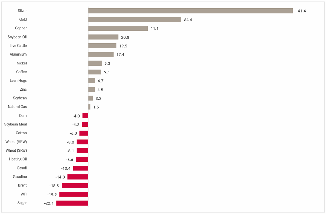 Already the highest level commodity ‘sector’ performance table reveals the polarisation within this asset class: