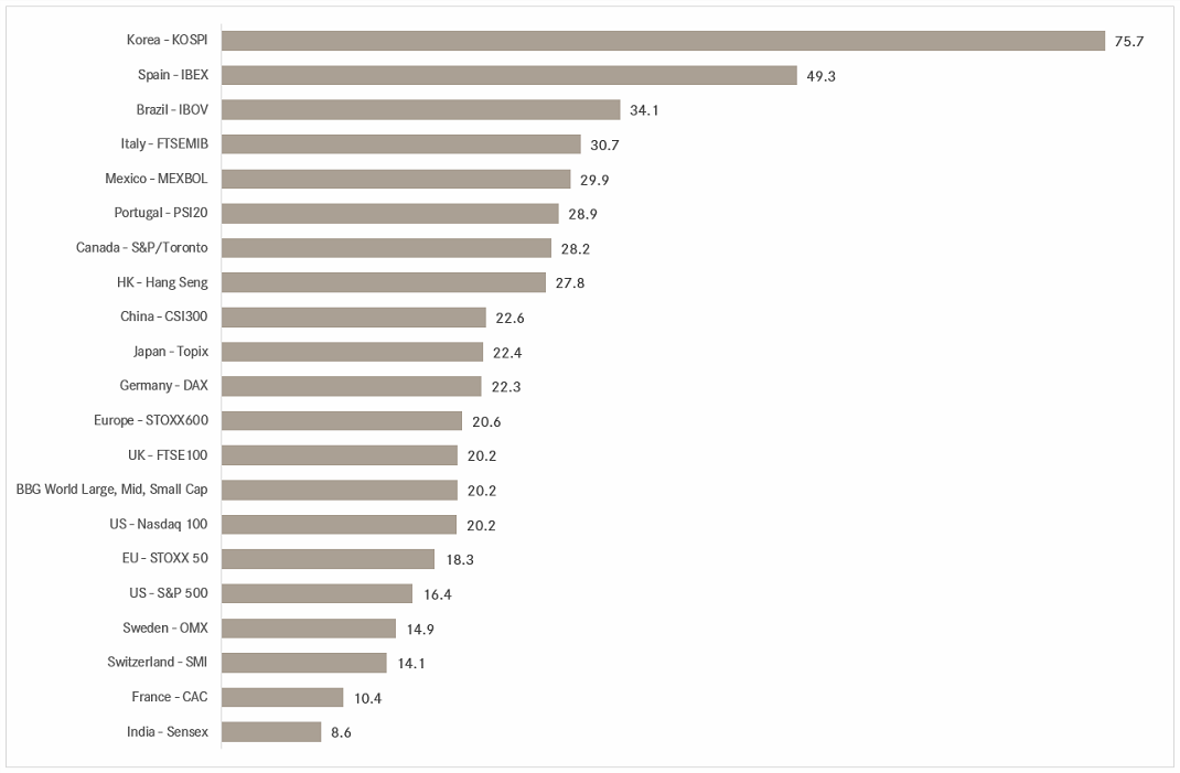 First, let’s have a look at our performance table of some of the most observed equity benchmark indices around the globe (all in local currency):