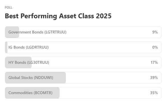 Hence, I conclude that the 5% that did vote are actually the smart money, as they got number 1 and number 2 right. However, I would also highlight that bonds probably delivered surprisingly good performance contributions, even boring govies…