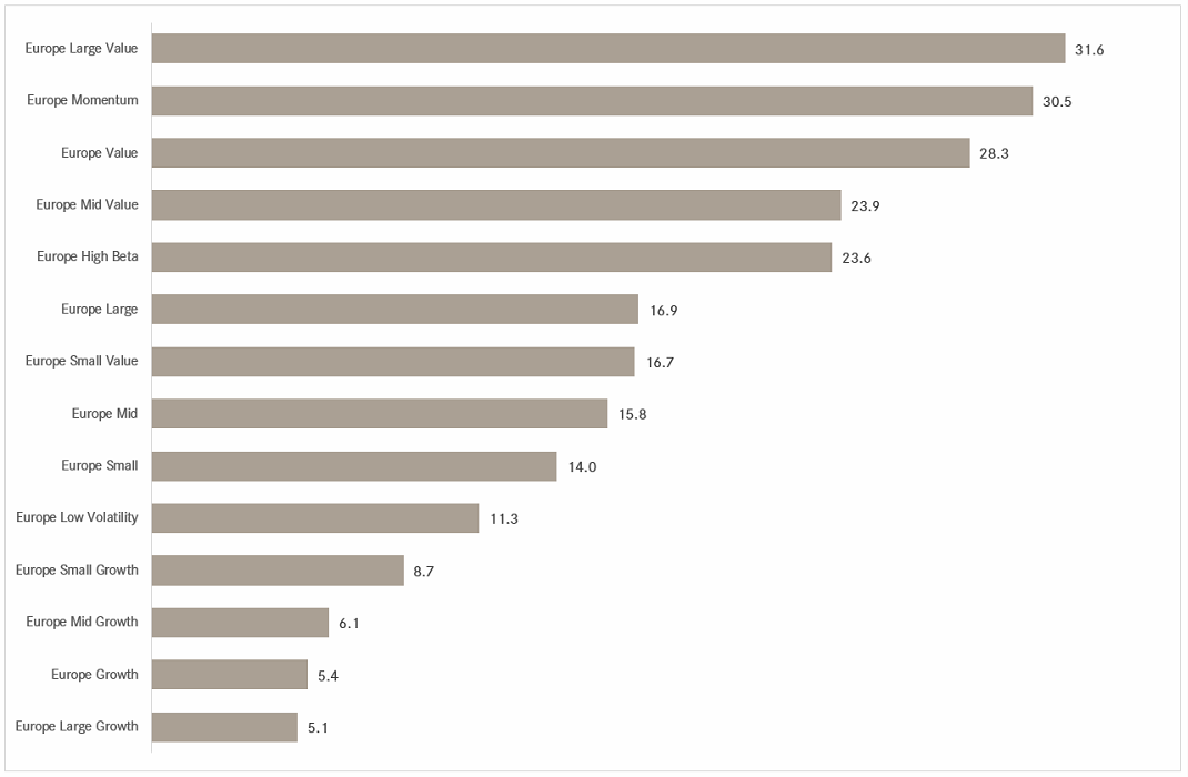 Defensive and small clearly did not work, the latter even catching me by surprise. However, I have a suspicion…let’s check in on European factor performance: