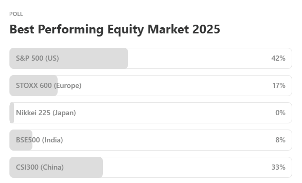 Uh, oh! Nobody voted for the best performing market (Japan)! But at least one third of you got the second best performer (China) right 👍😀