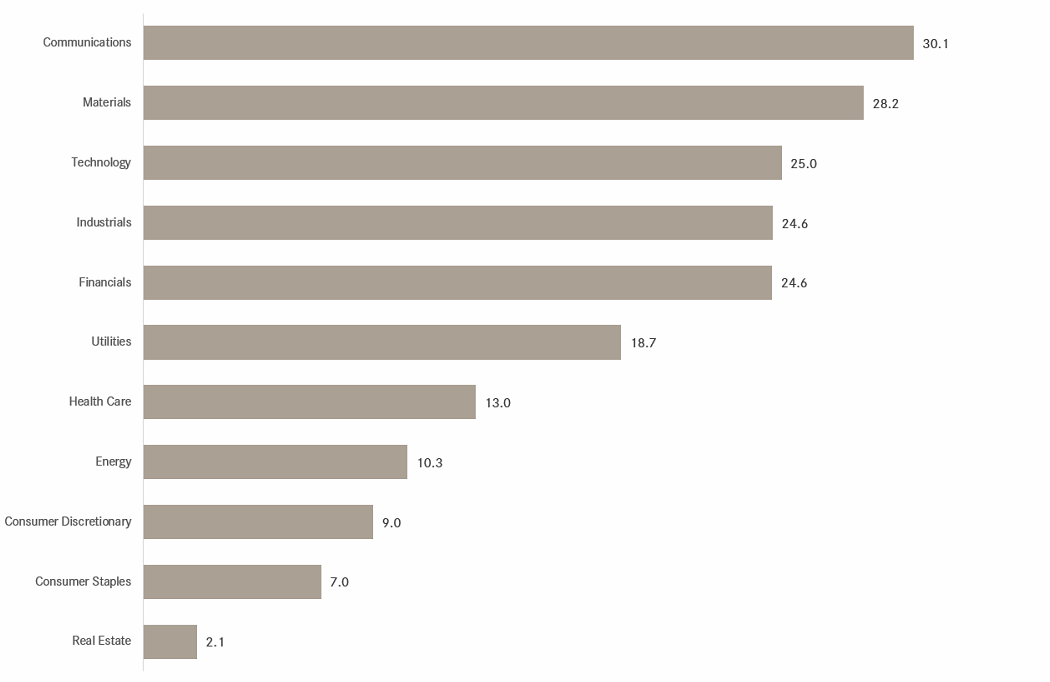 Any surprises here? Ignoring the communications sector, where Alphabet (Google) and Meta make up more than 50% of the index weight (note to self: finally include those equal-weight indices), probably not many thought that materials would end so well. And it is also curious to see that Consumer Staples (defensive) and Consumer Discretionary (cyclical) have such a similar performance.
