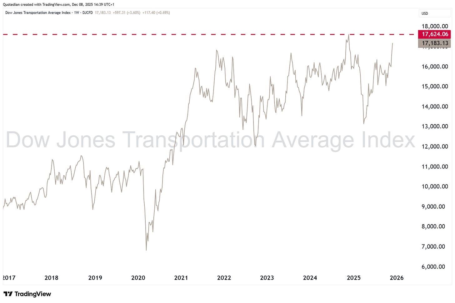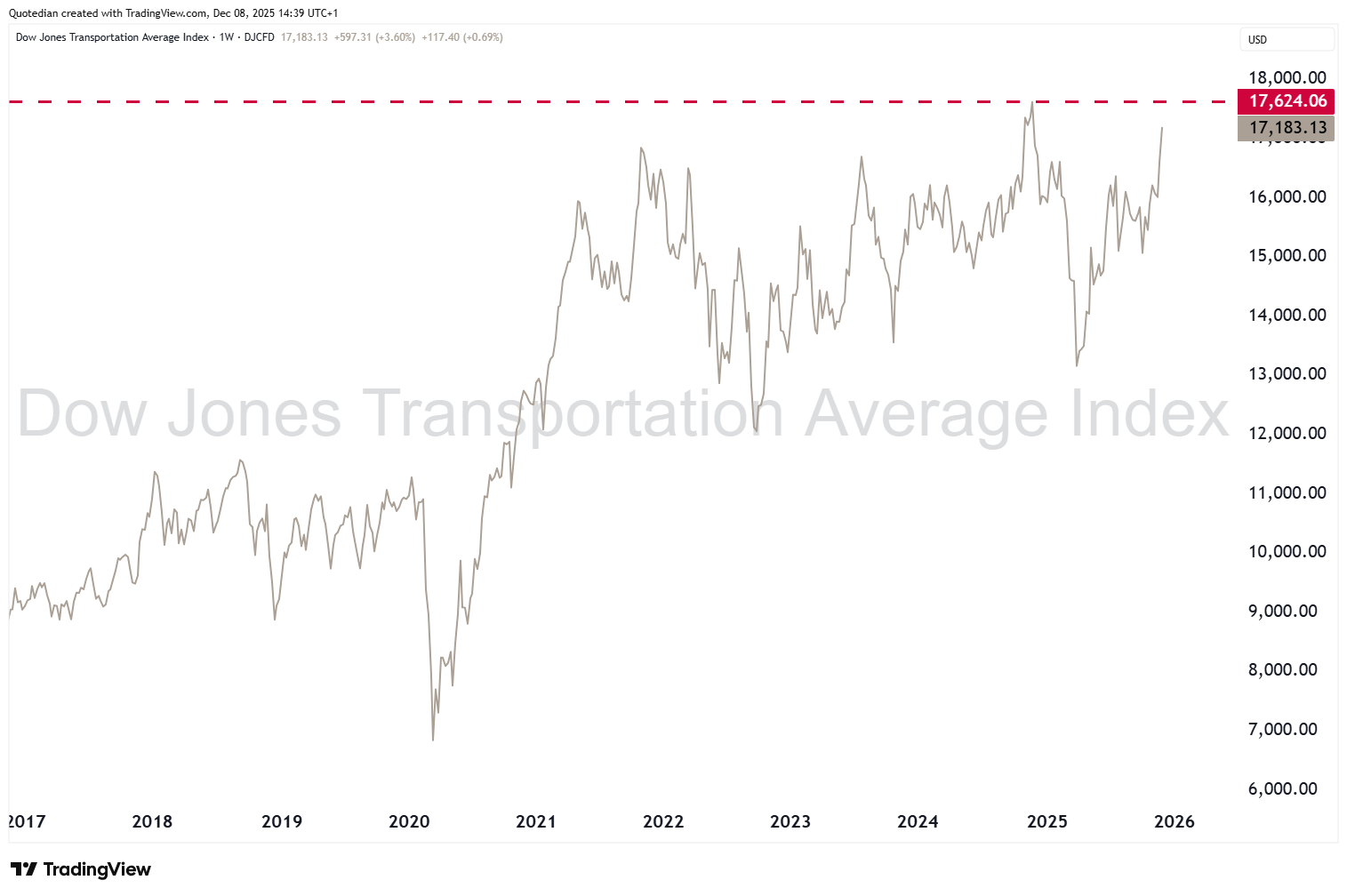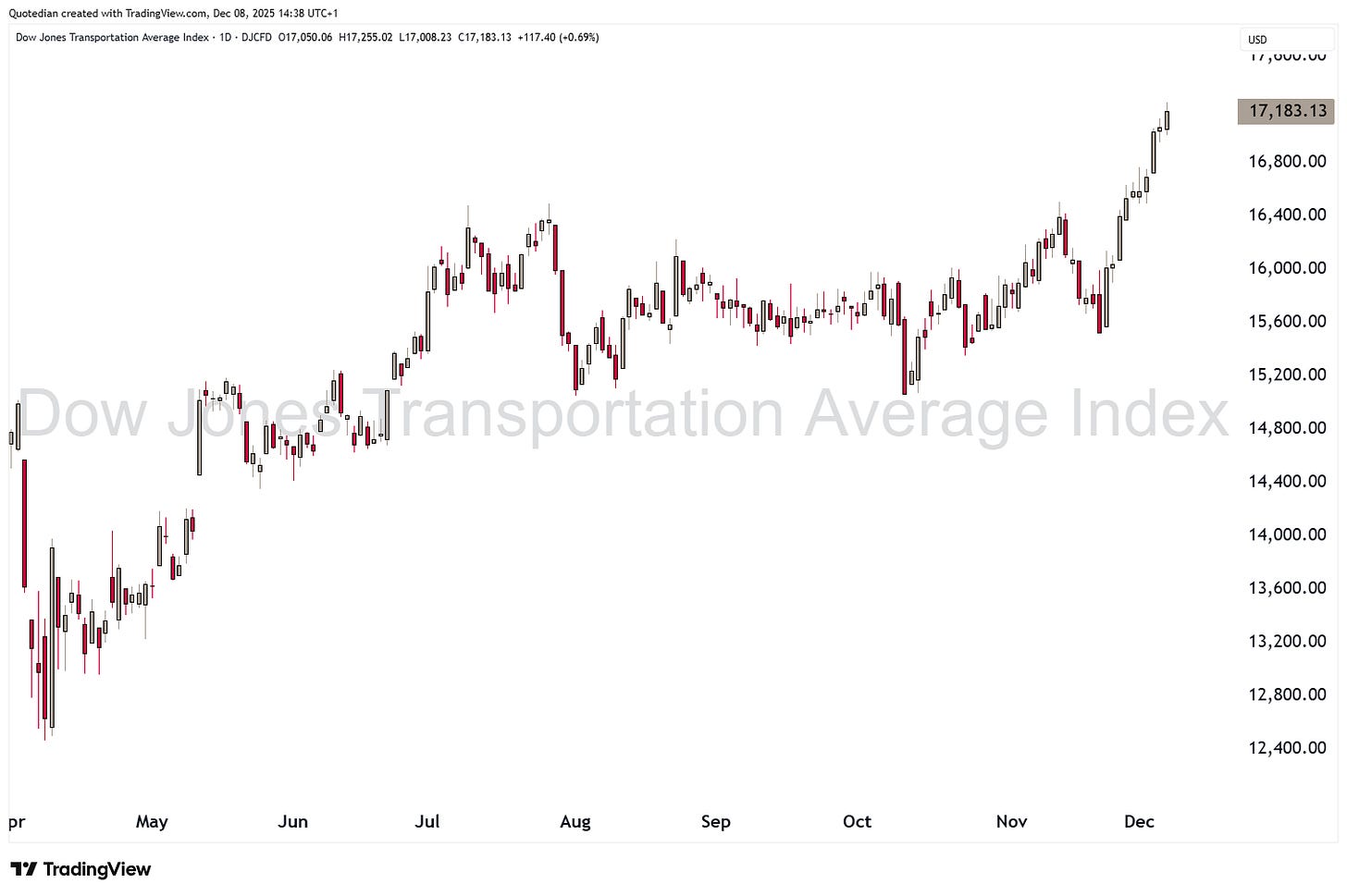 One index that pushed rapidly higher was the Dow Jones Transportation index: