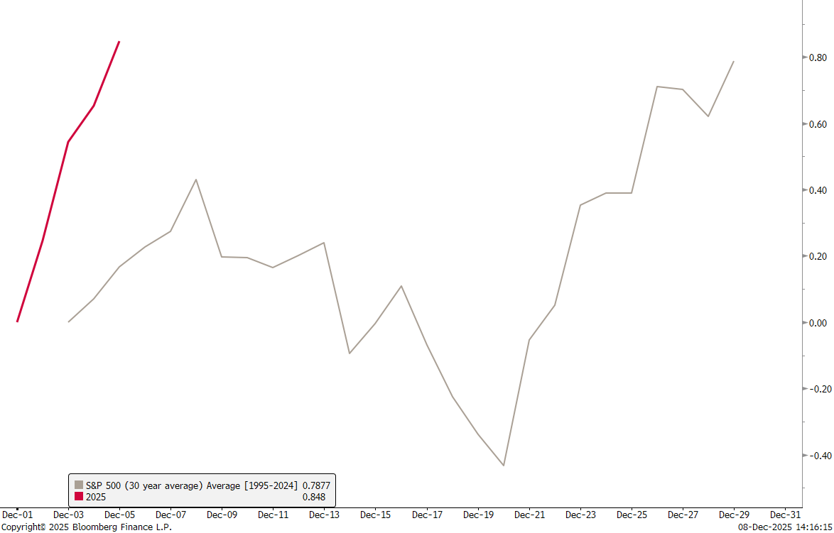 Seasonality would now dictate some weakness over the coming two weeks before the traditional Santa Claus rally,