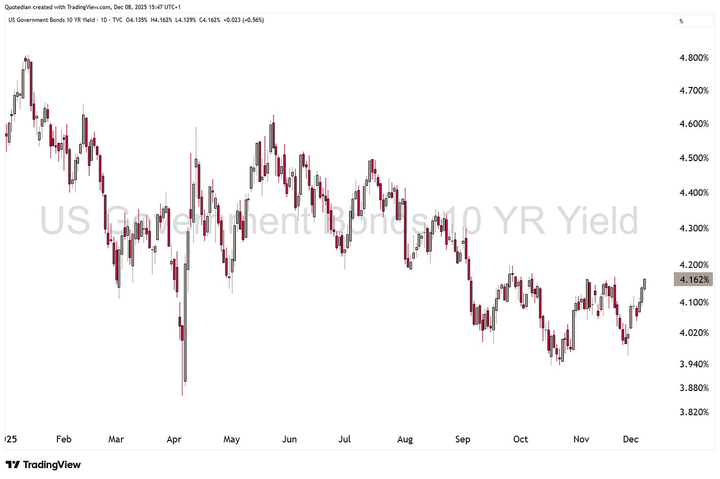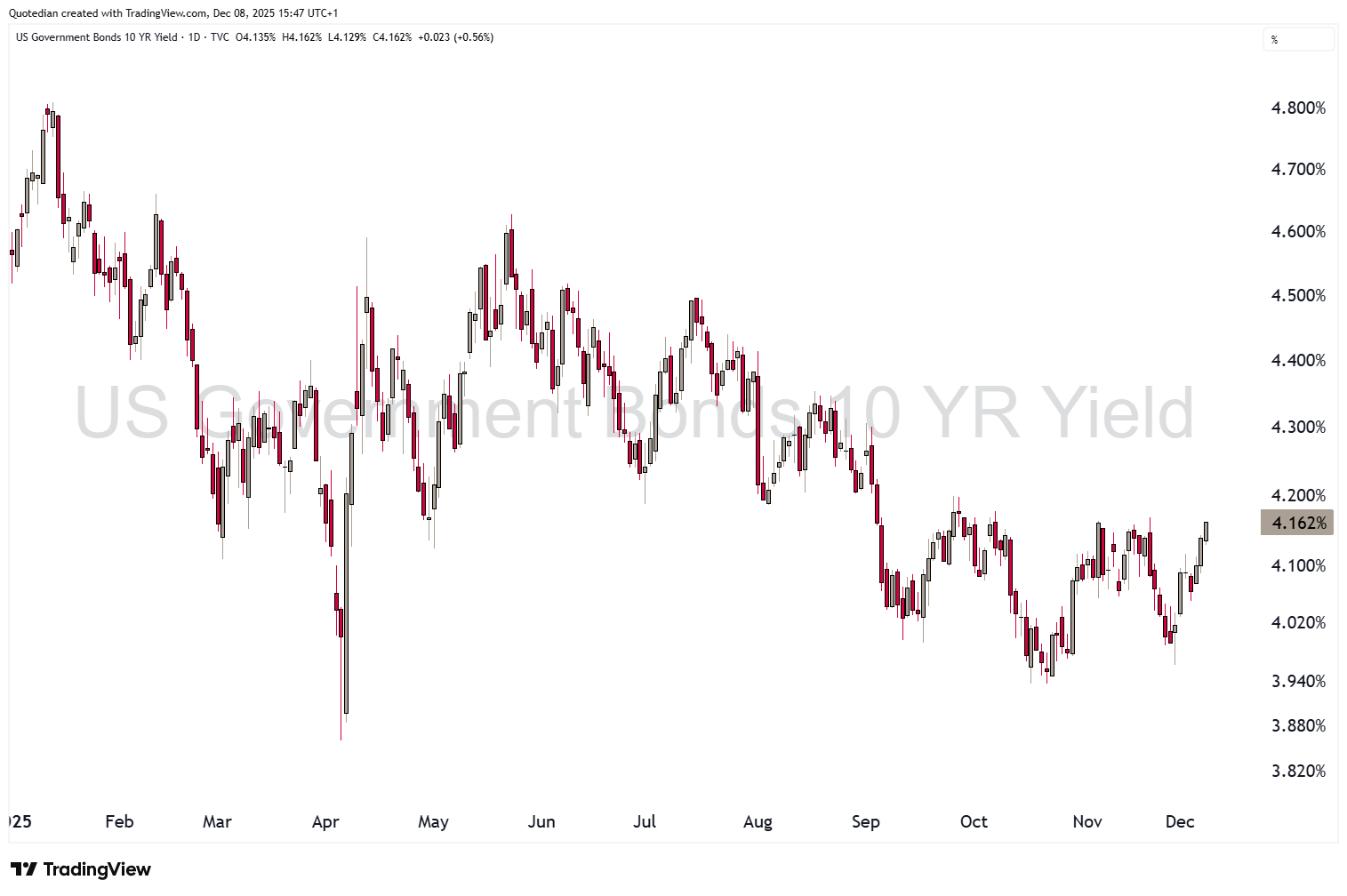 The bond markets is already mildly protesting against the rate cut, with the 10-year Treasury yield rallying above 4.15 today: