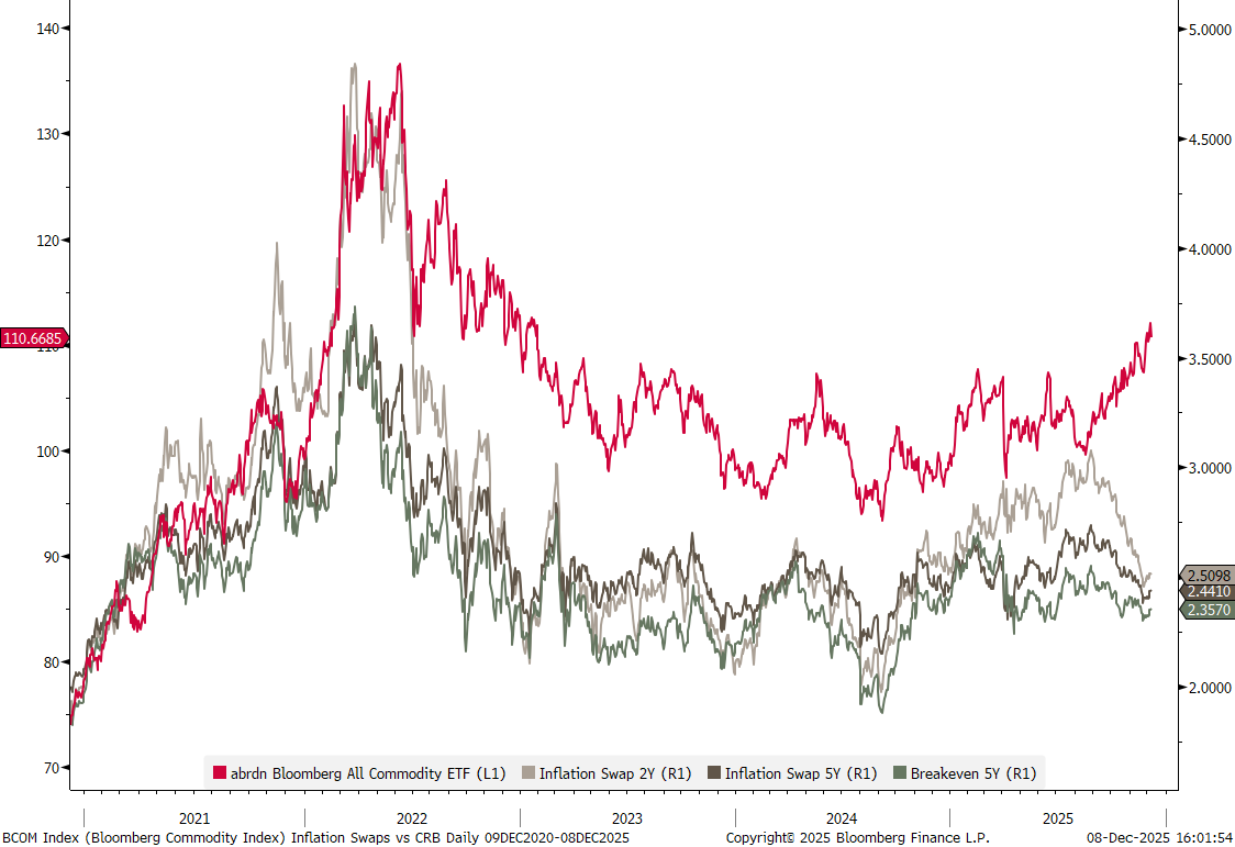 Normally, correlation between inflation expectation and commodity prices is pretty elevated. The current divergence should not be ignored - and imagine what would happen to the red line should oil prices suddenly also start moving higher ….