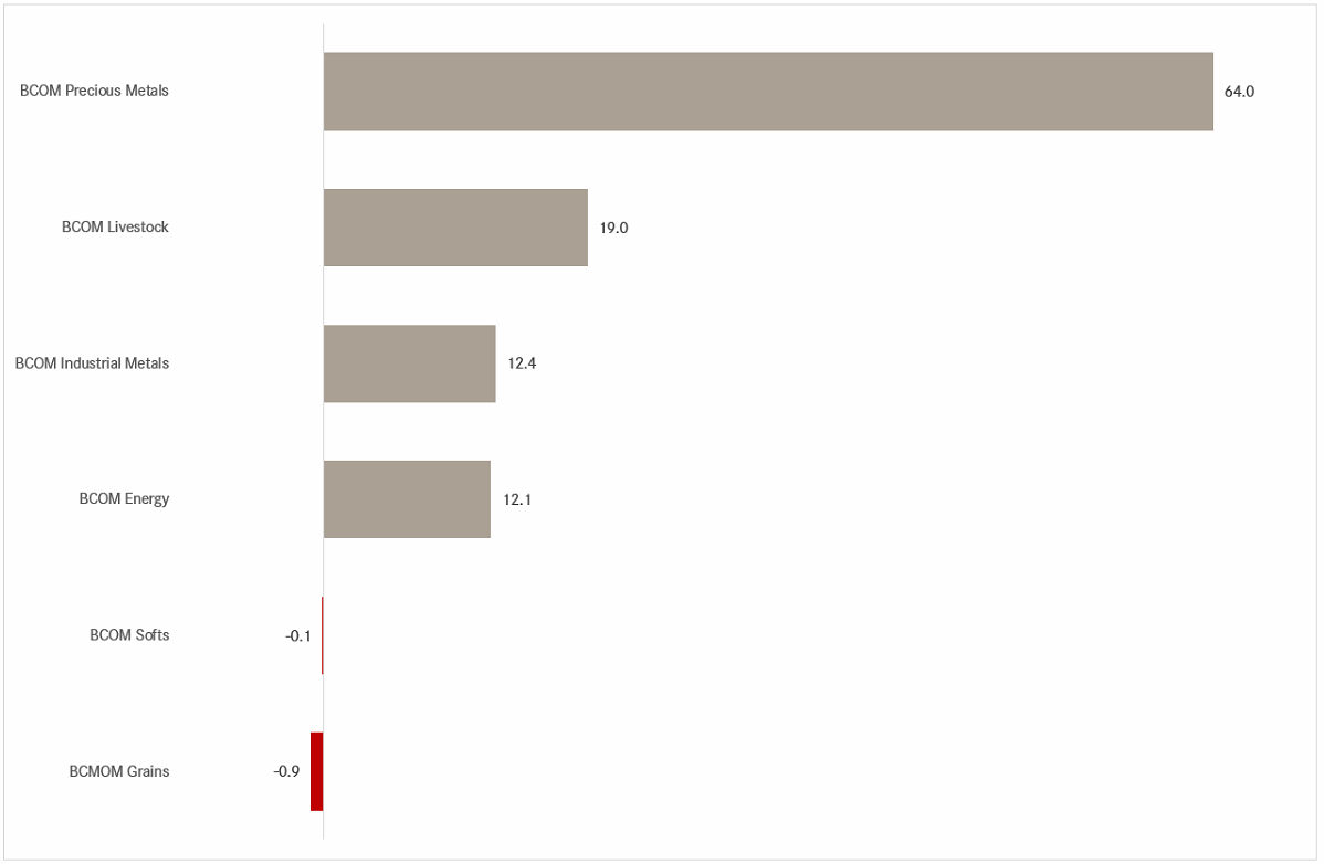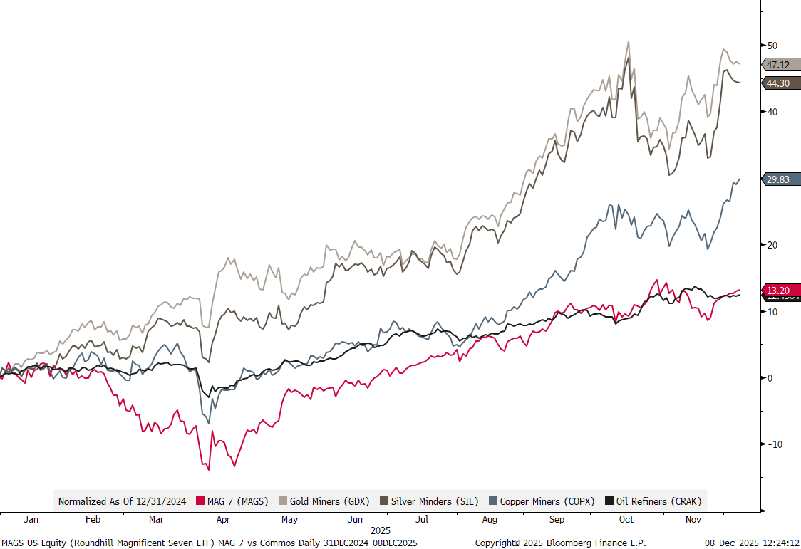 but even more so for commodity-related equities, which have easily beaten the mighty Mag 7 this year: