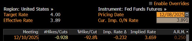 In the case of the Fed, the market expects a 25 basis points rate cut with a certainty of 93%:
