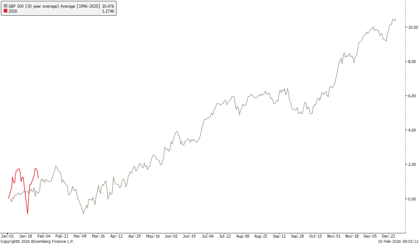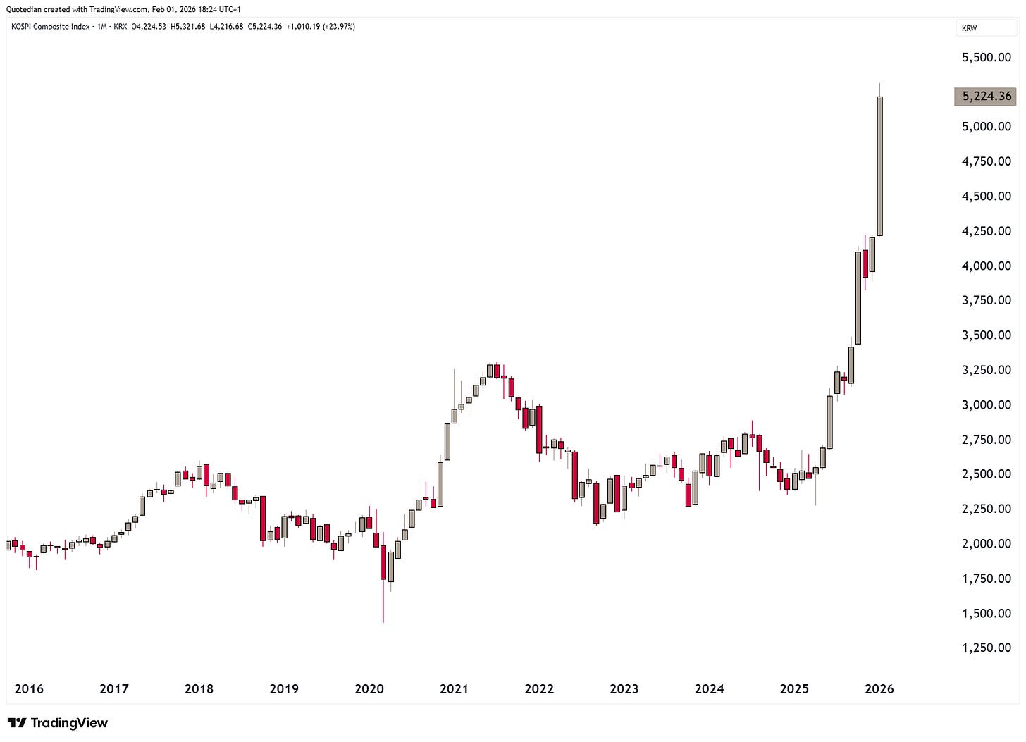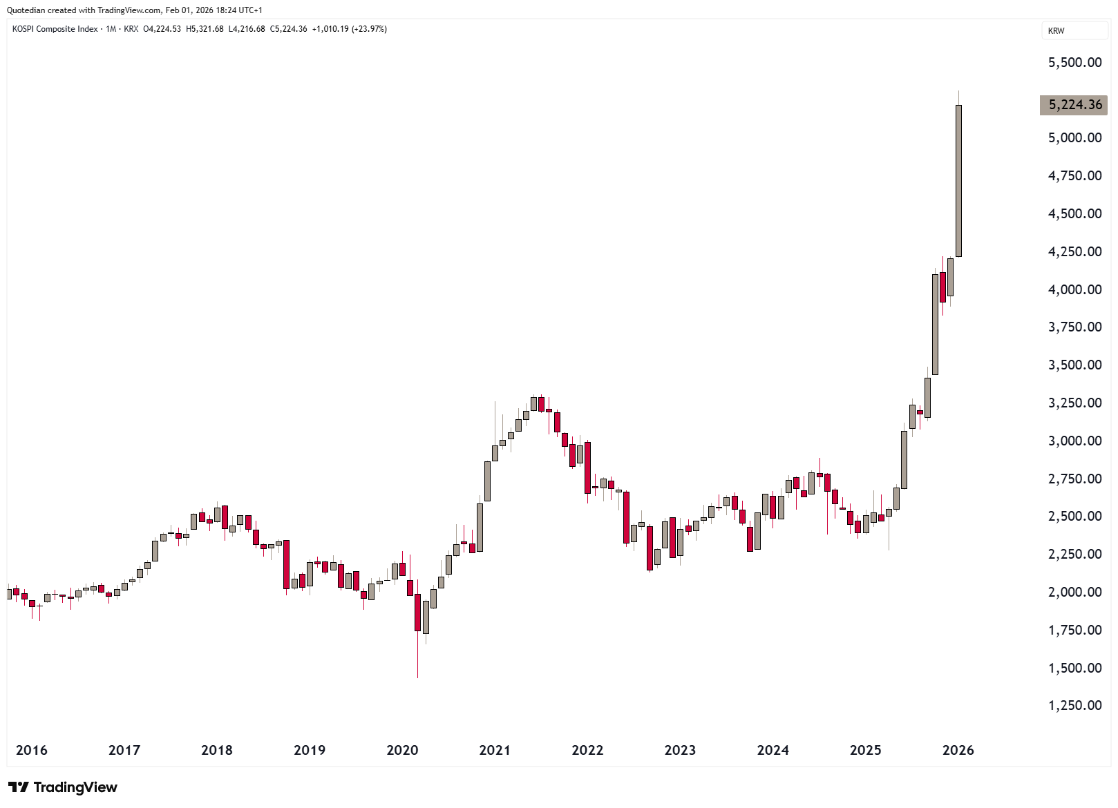 At the lower end of the scale we find Indian and Swiss stocks. In India, it was likely the fear of a new tax on equity (derivative) transactions to be implemented by the government, which was confirmed this morning (1.2.2026):