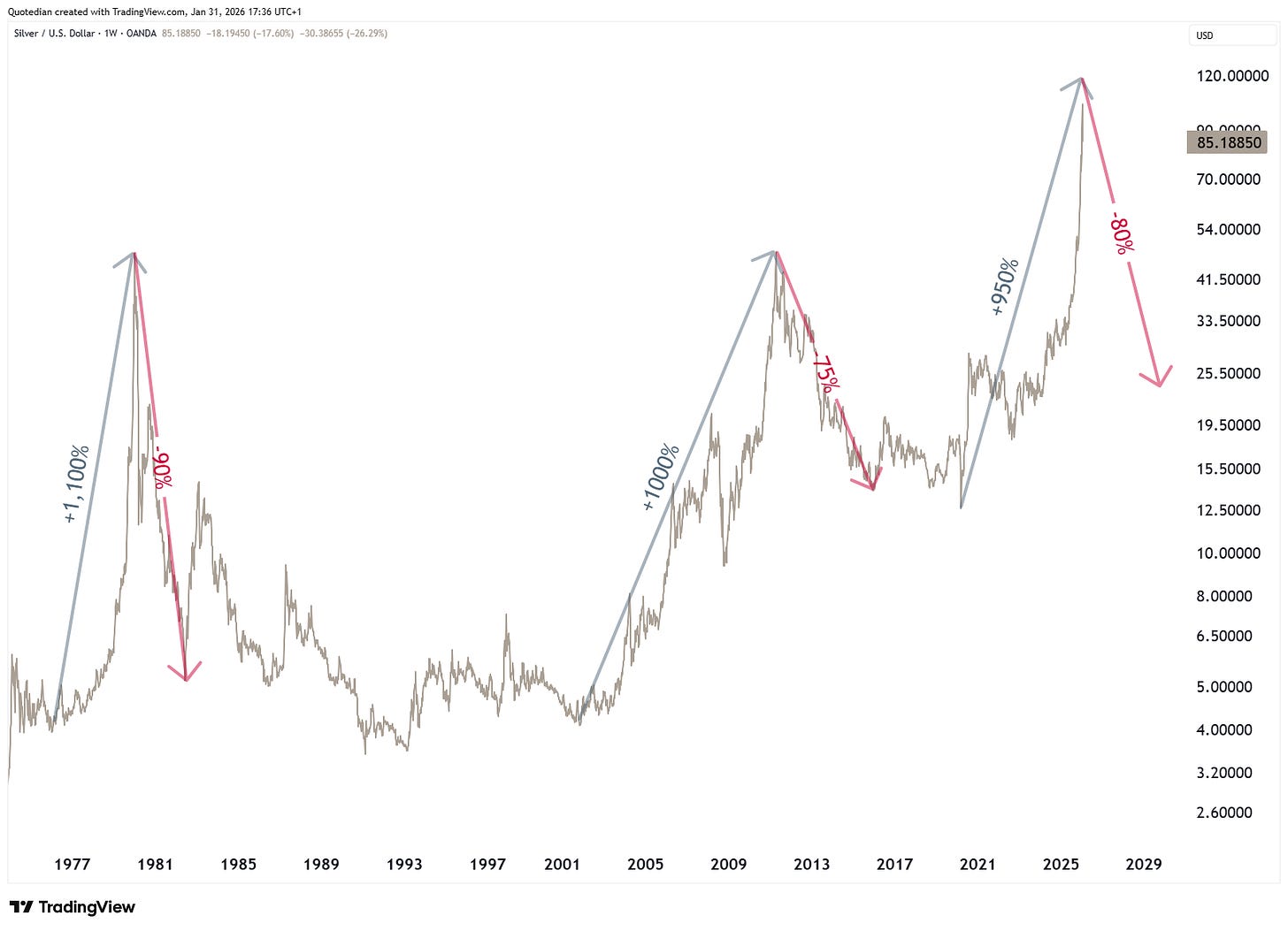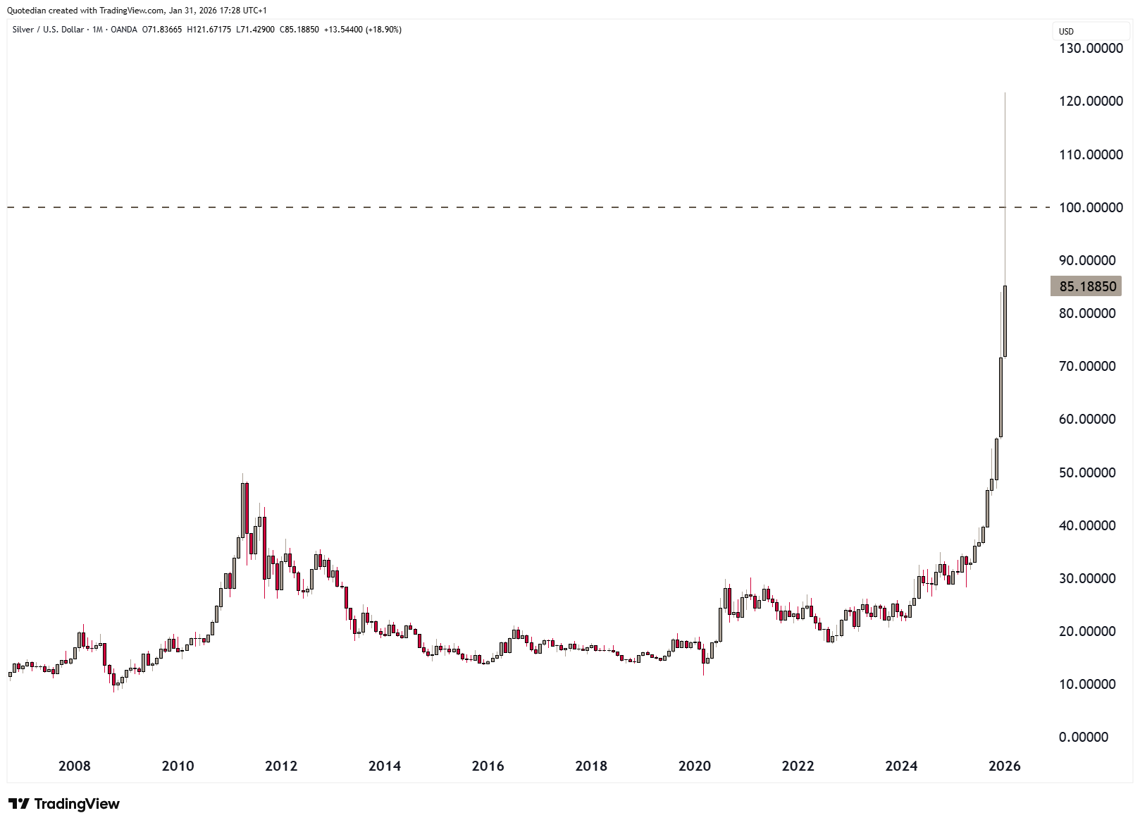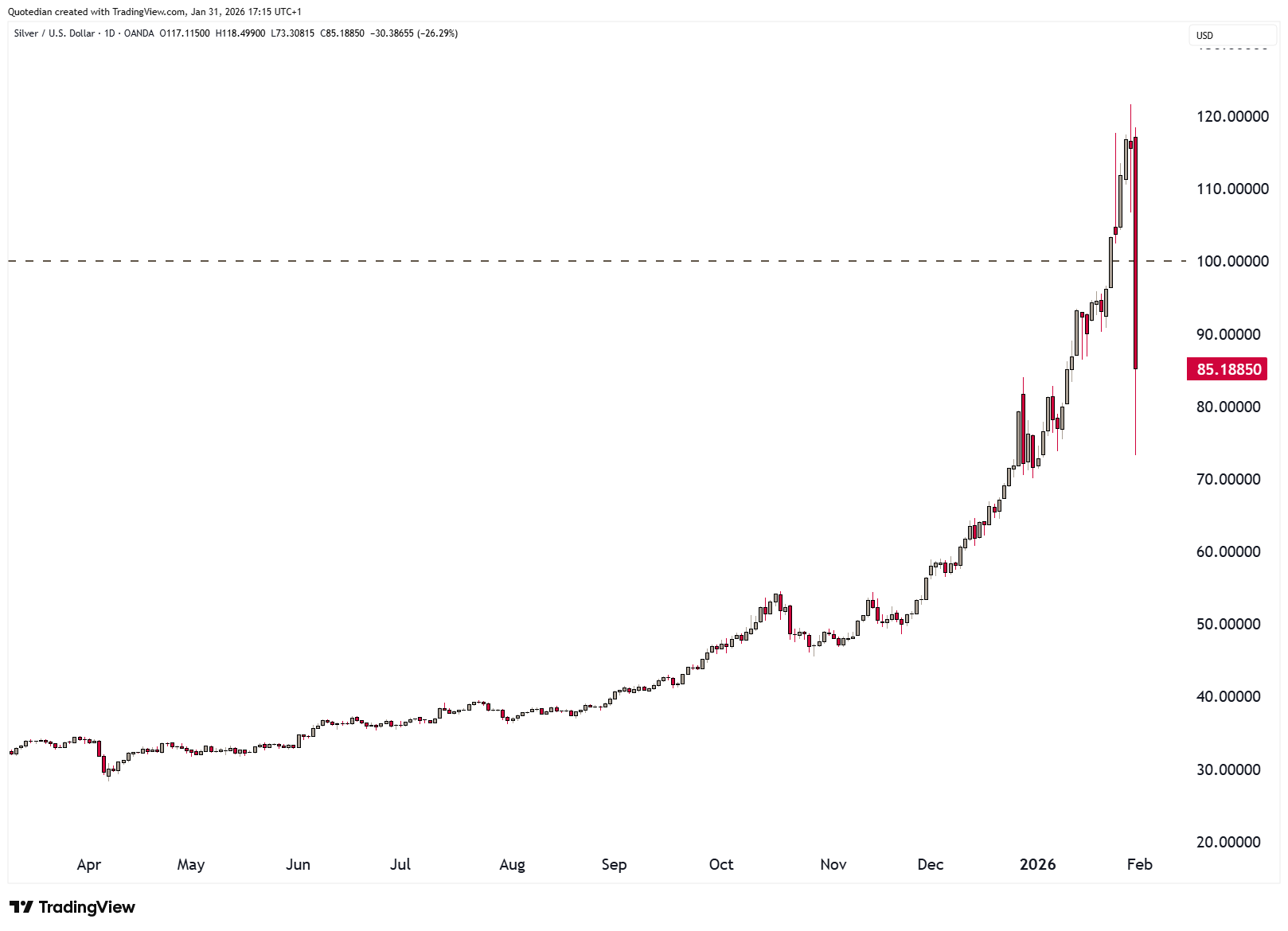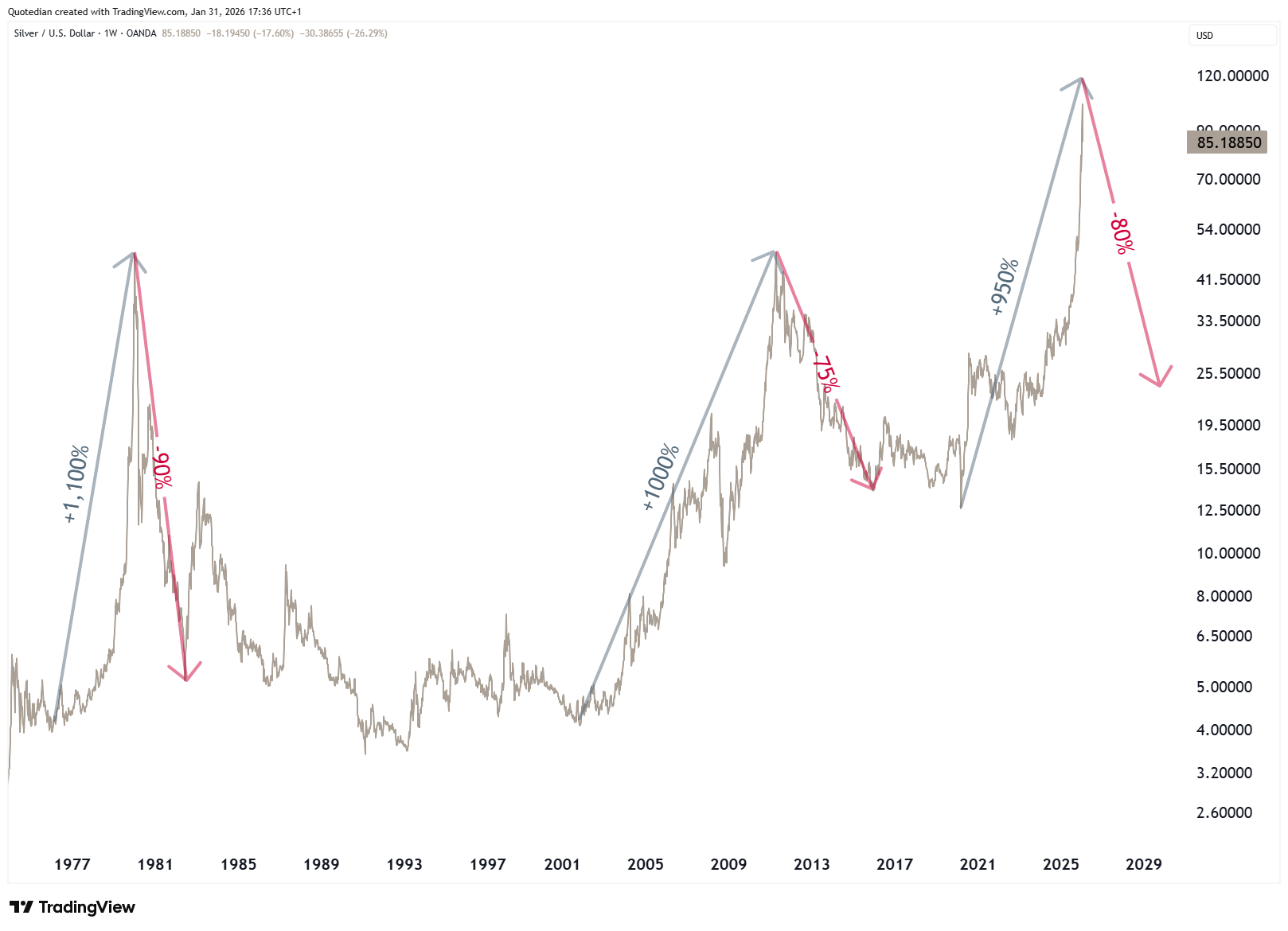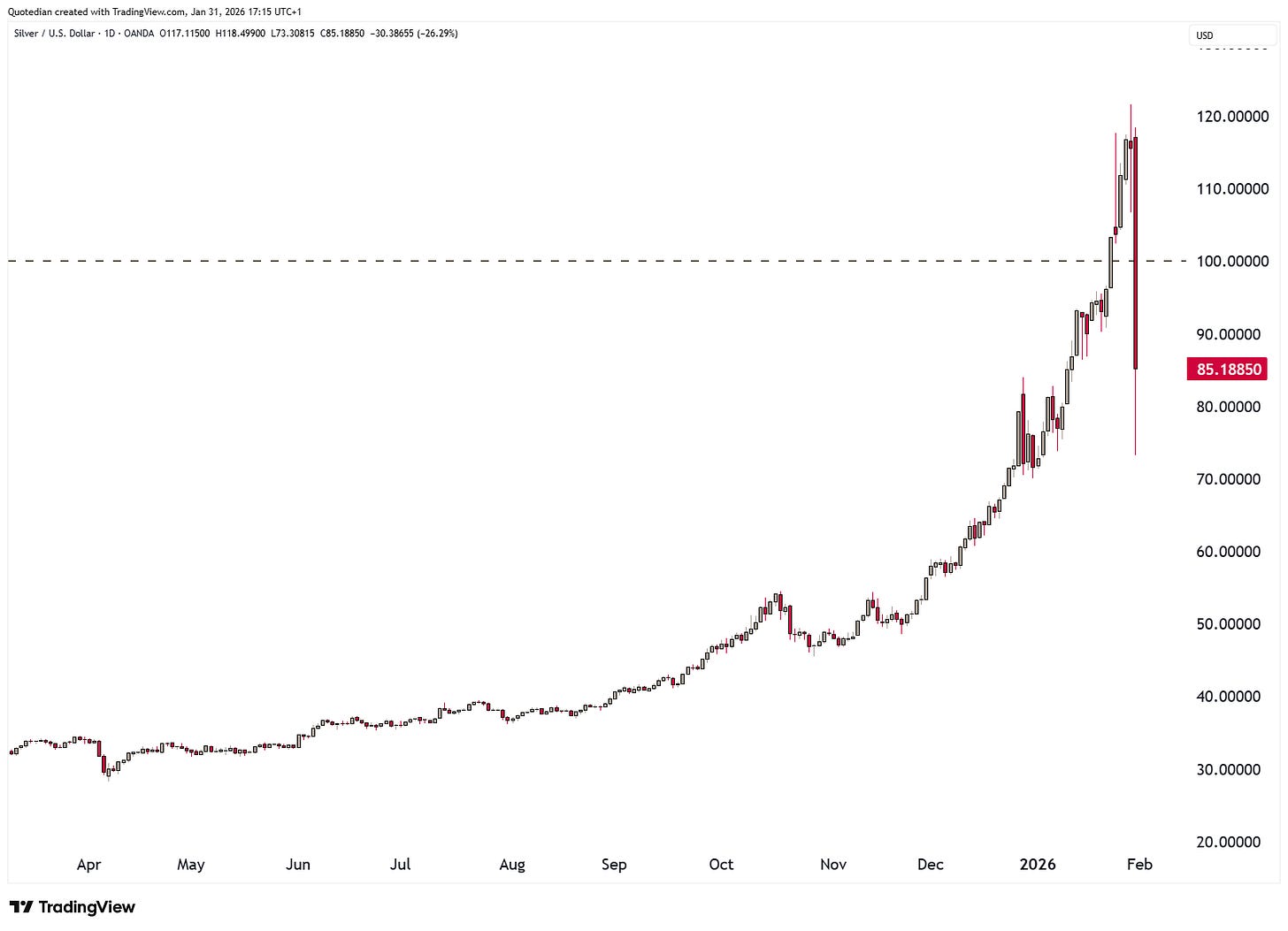 And here is what happened to Silver (pay close attention to the last candle to the right, which was Friday 30.1.):