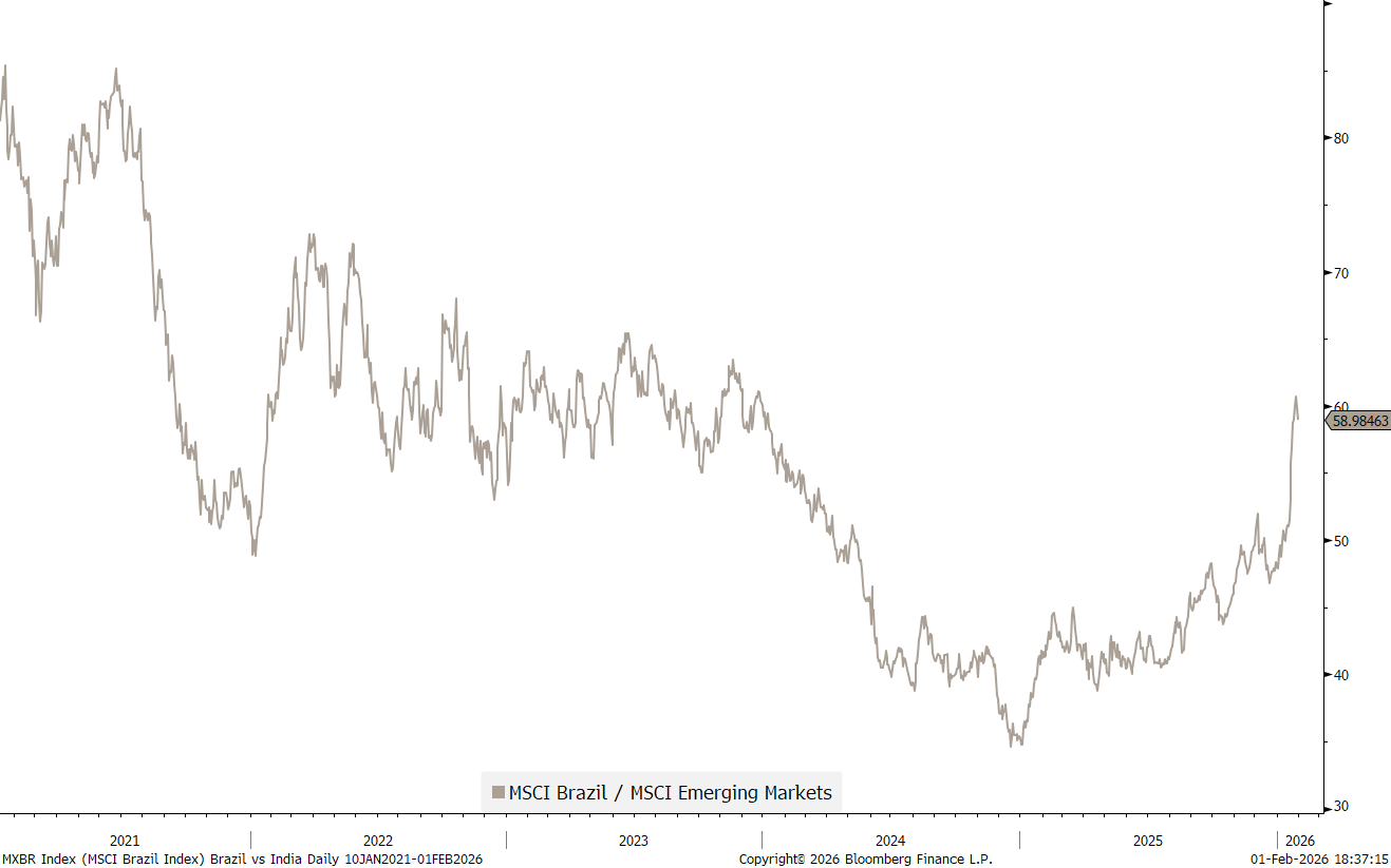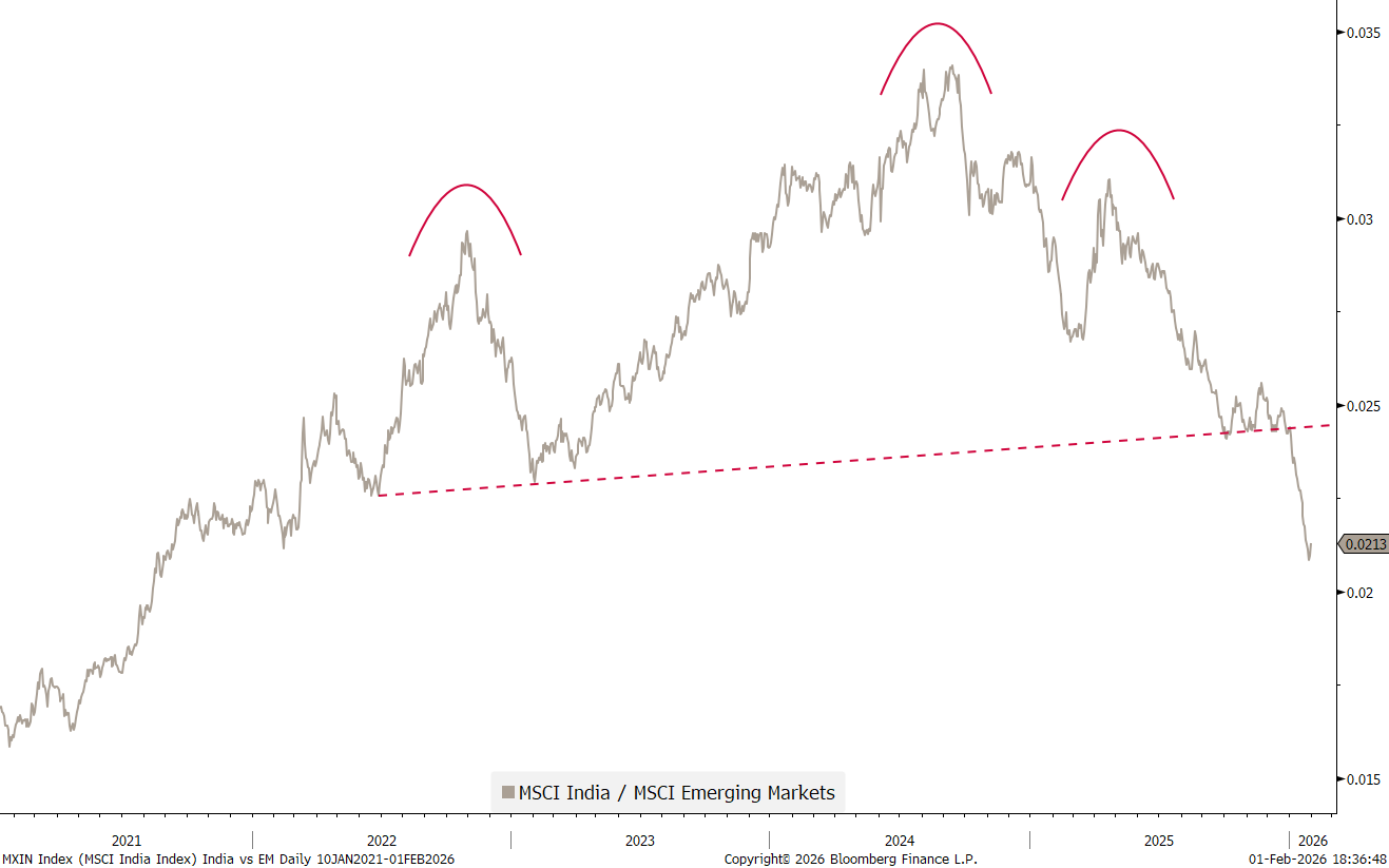 We already discussed last week and in our NPB 2026 outlook that on a relative basis, India has become a ‘krass’ underperformer versus the rest of the EMs: