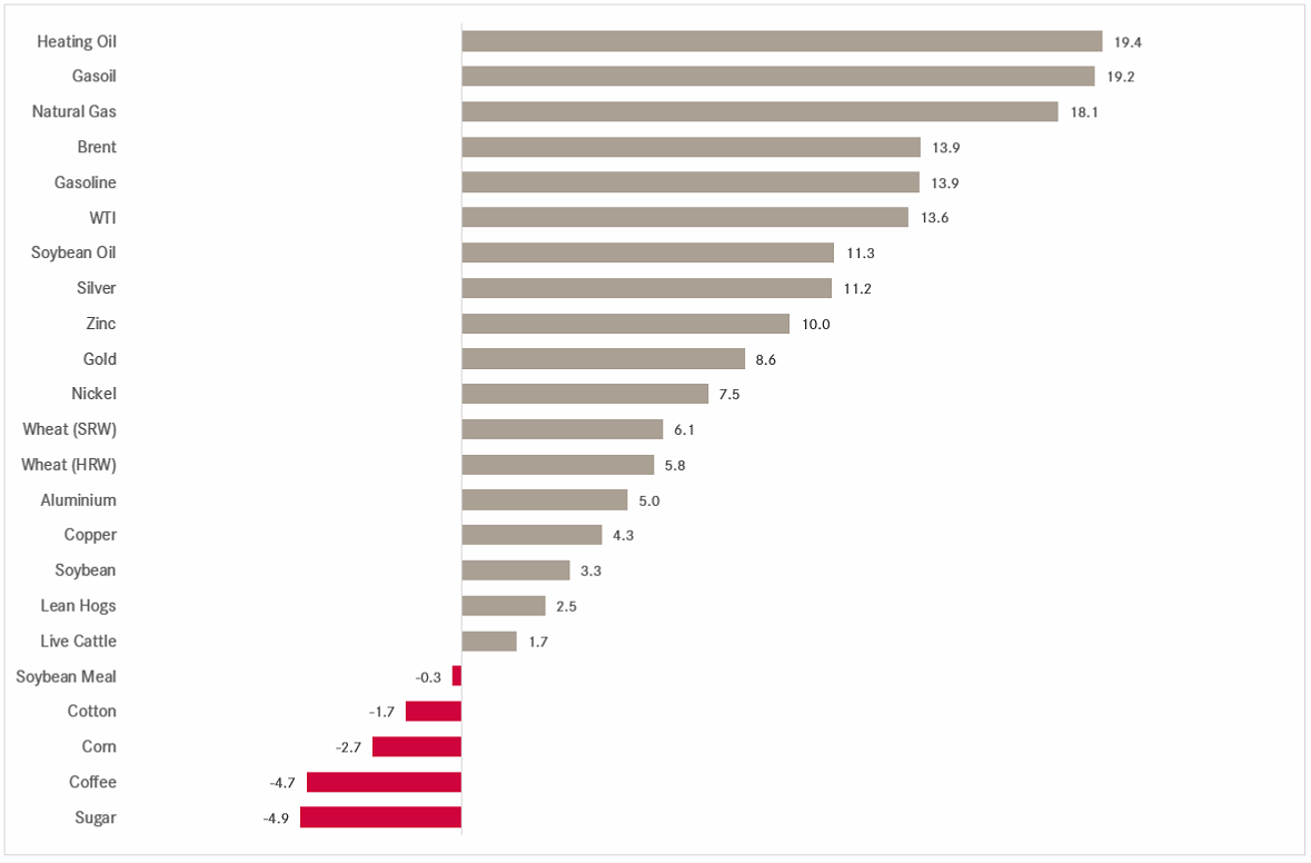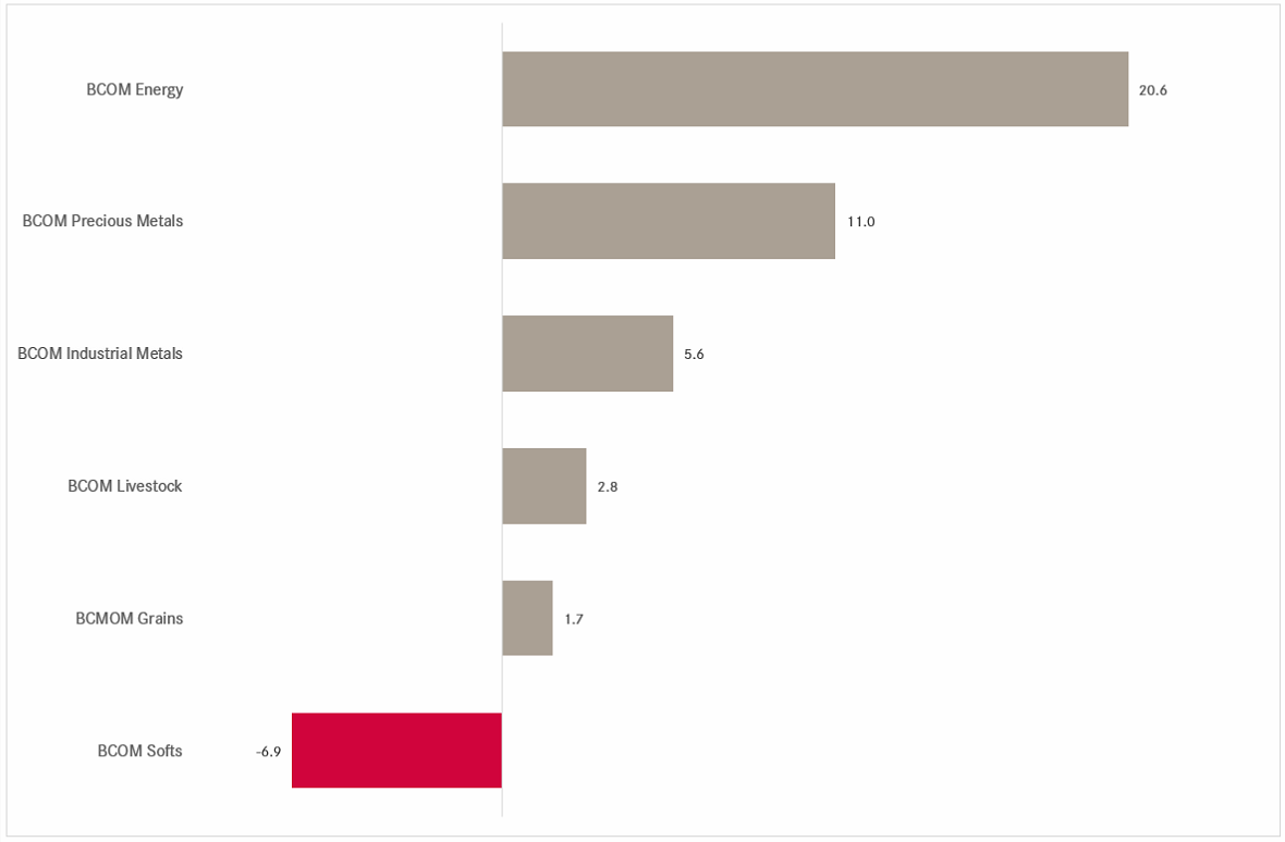 Here are the January, and hence year-tod-date performance of commodity ‘sectors’: