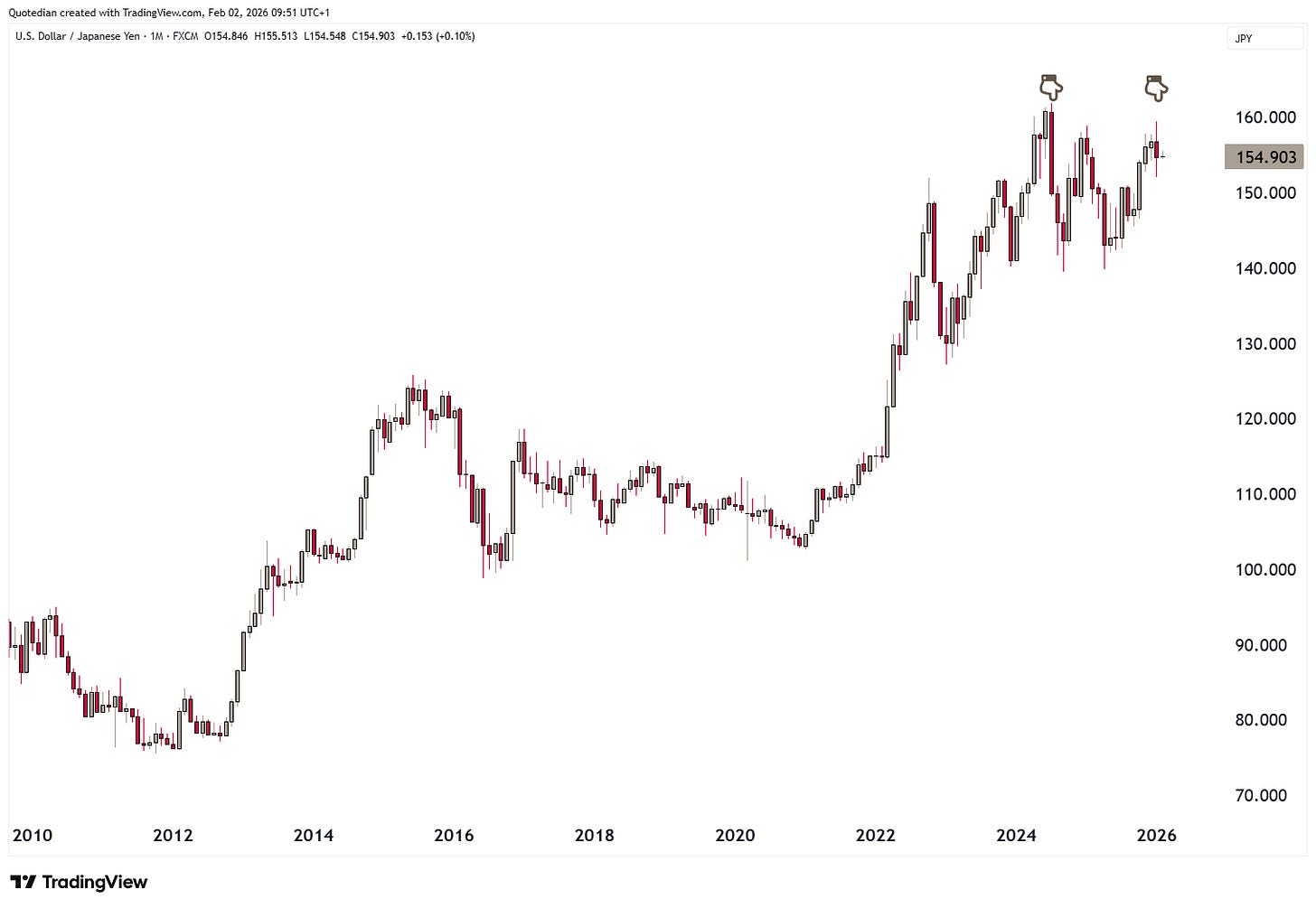 The USD/JPY seems to have found its new lid at 160, a level not set by market participants, but rather by the BoJ/MoF:
