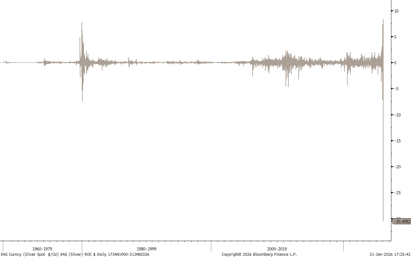 It was the second biggest daily %-move in Silver since the late 1950ies, (the biggest move was in the early 1980ies as the Hunt Brother tried to corner the silver market),