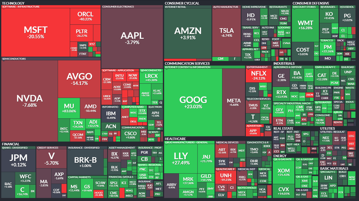 mainly due to five (MSFT, AAPL, TSLA, NVDA, META) of the Mag 7 stocks having got stuck over the past three months: