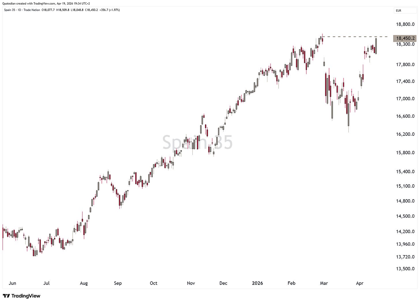 Spain’s IBEX is only about a quarter of a percentage point away from reaching that feat: