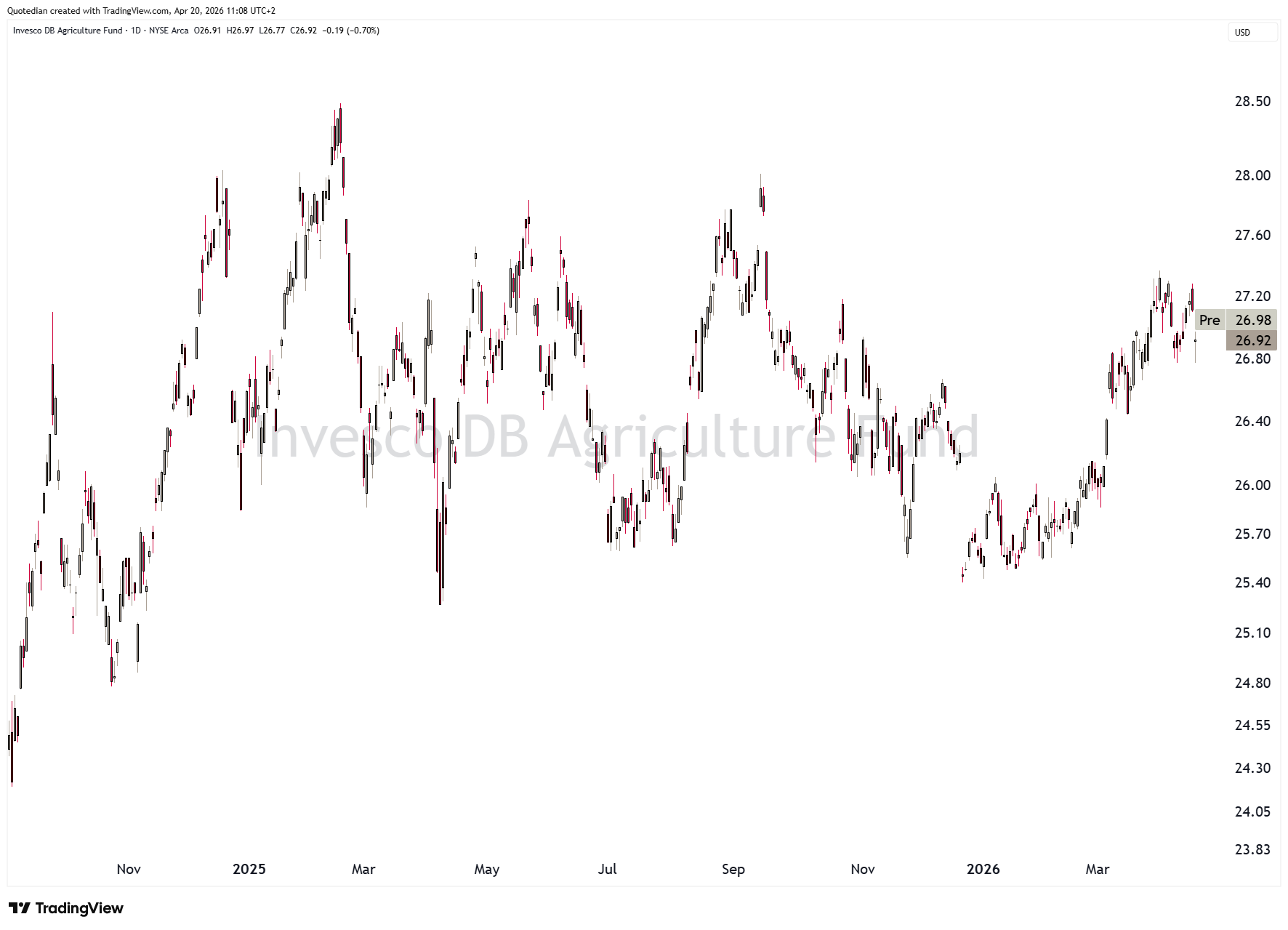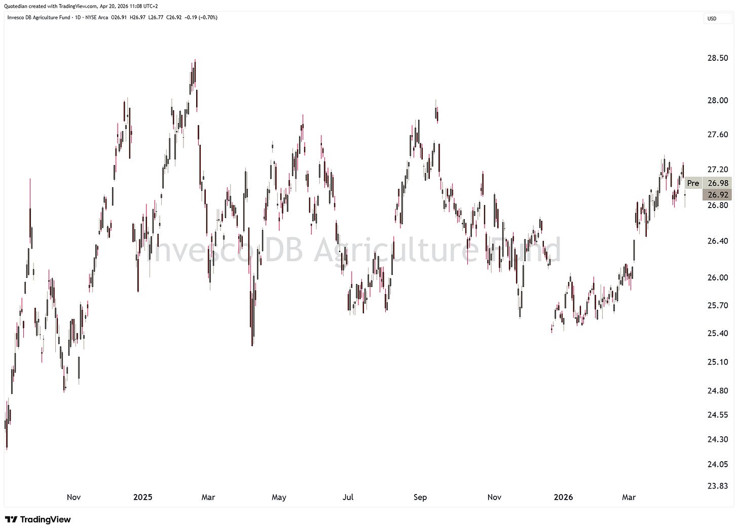 As proxy trade, consider the Invesco DB Agriculture ETF: