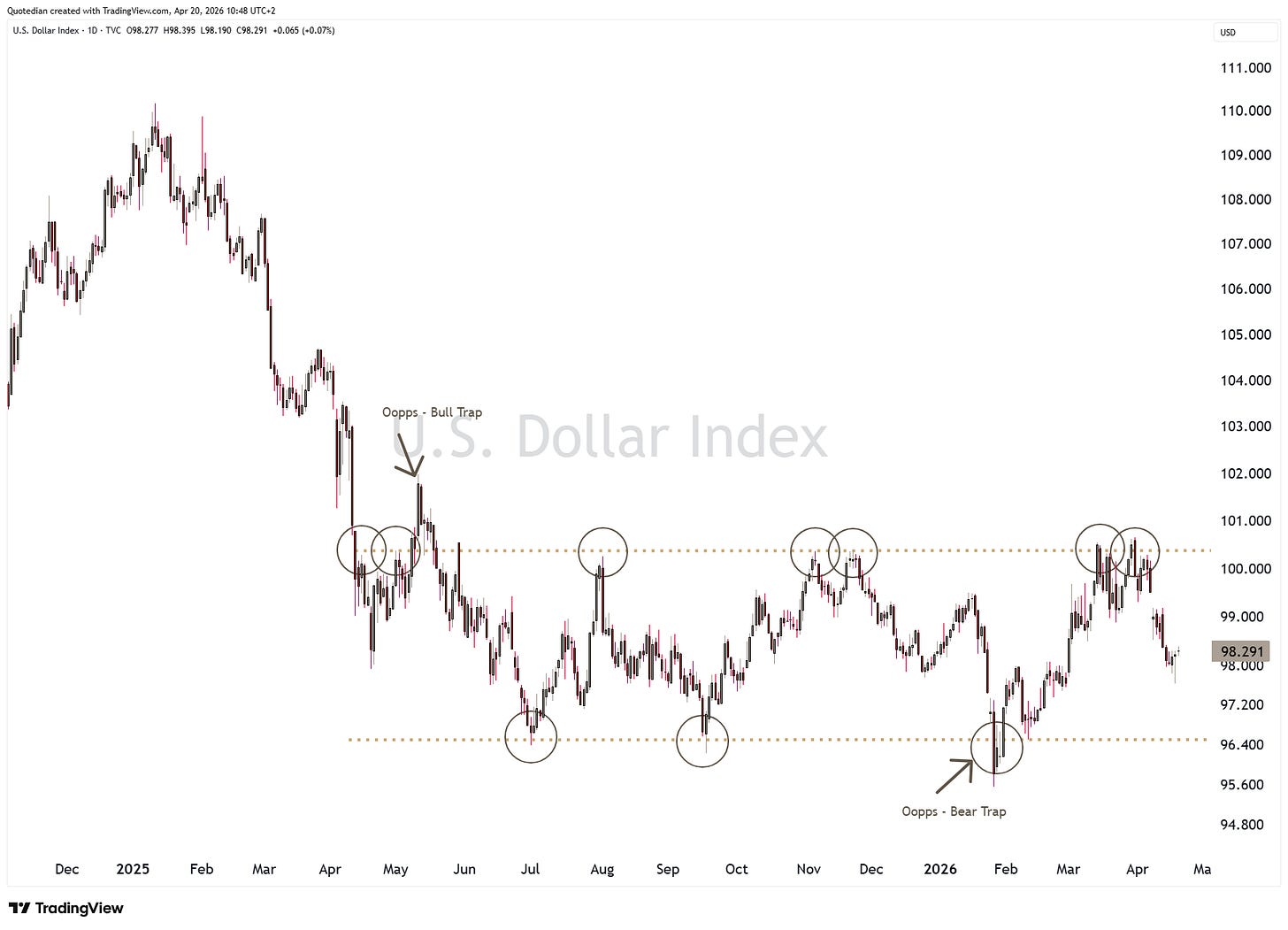 The US Dollar Index itself continues to trade in its wide trading range,