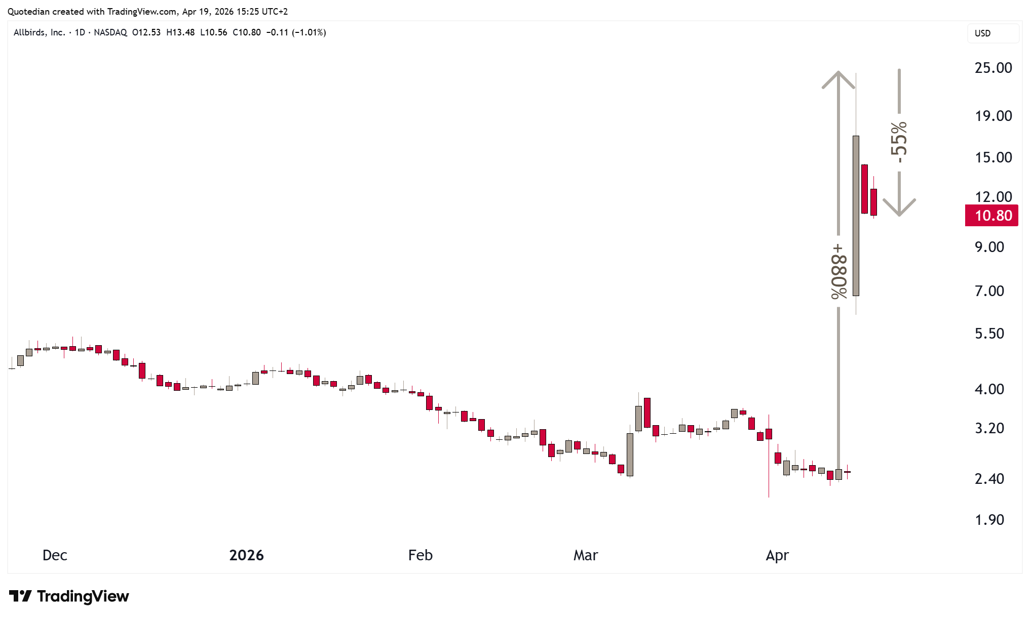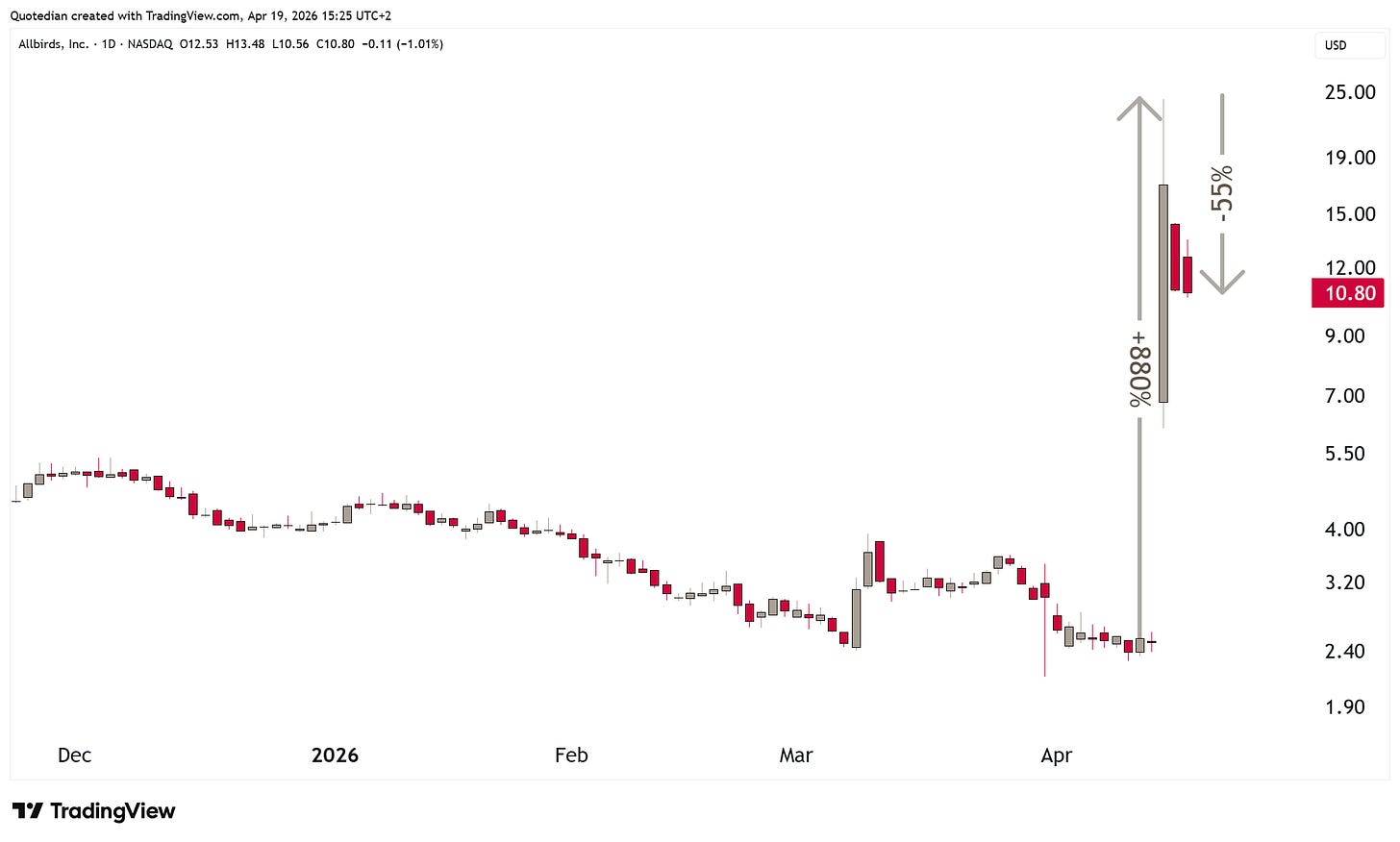 Last week, a woolen-shoe making company, Allbirds, announced that they will sell all of their core-business, supposedly including sheep et al. (week Dad-joke, I know), to re-focus on AI GPU-leasing, rebranded as NewBird AI. This is what the share price did: