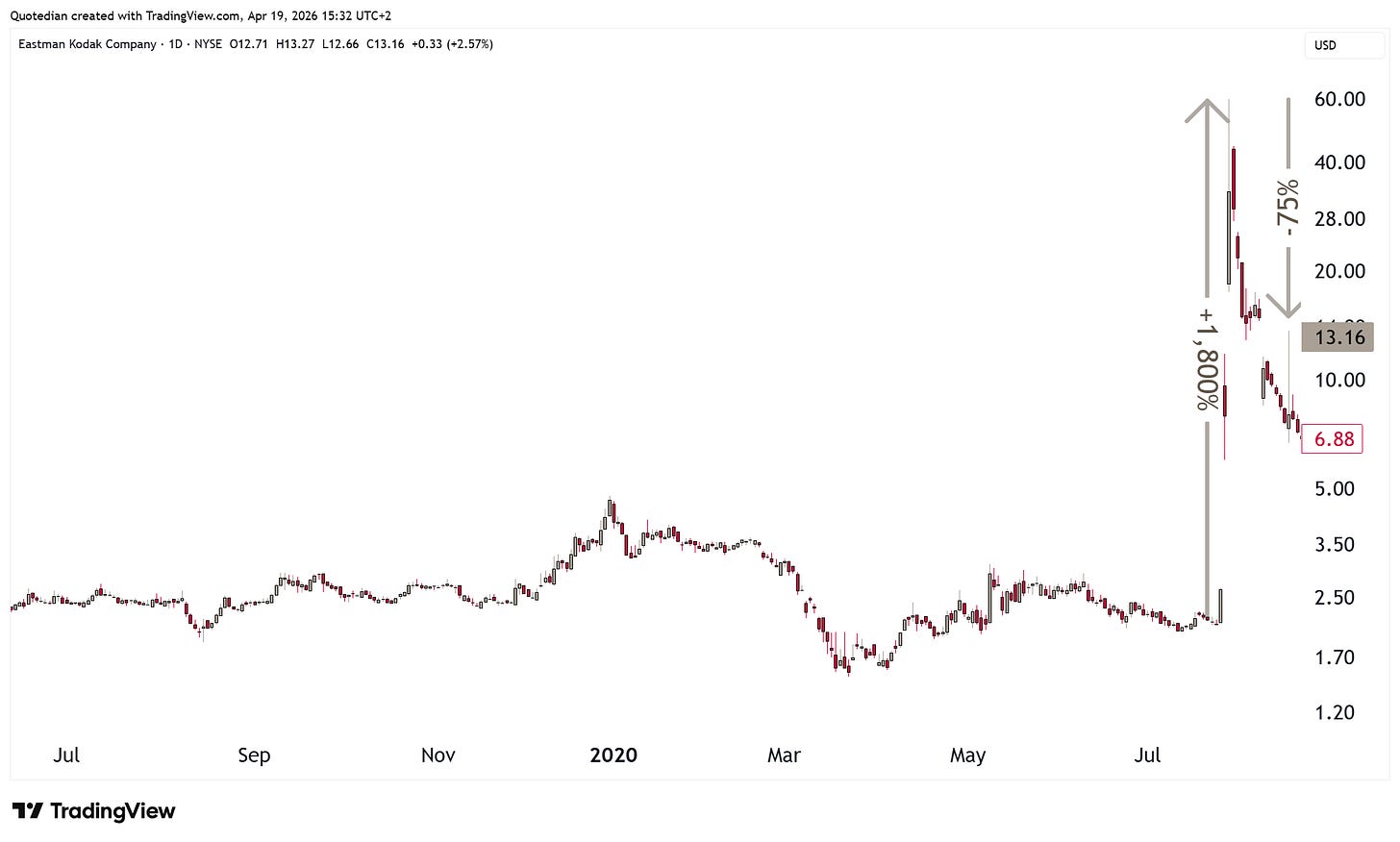 But for now, this ‘move’ reminds me a lot of Kodak’s, a once Nifty-Fifty company, intent to relaunch their glory days by refocusing their business on crypto-bla-bla-bla back in 2020: