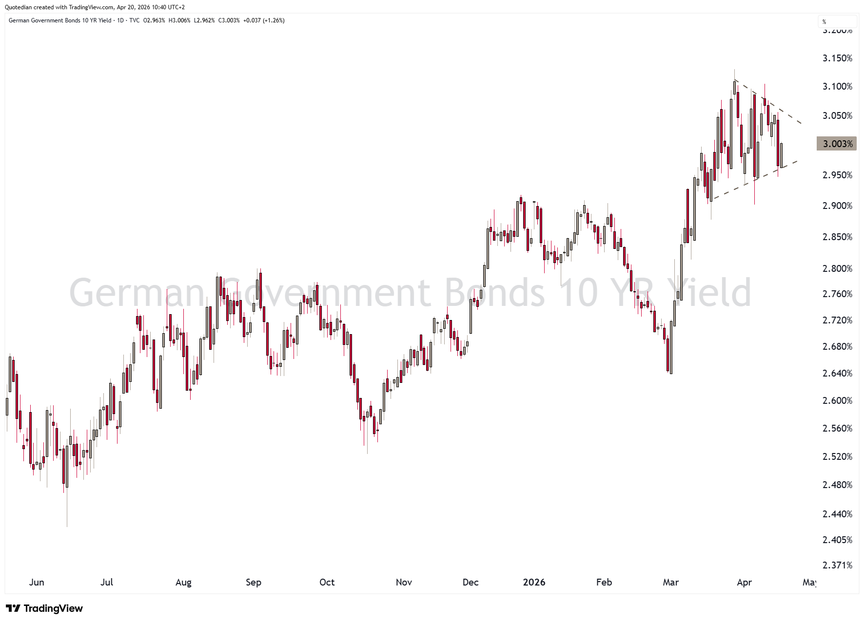 European yields, proxied via the 10-year German Bund, are refusing to come lower: