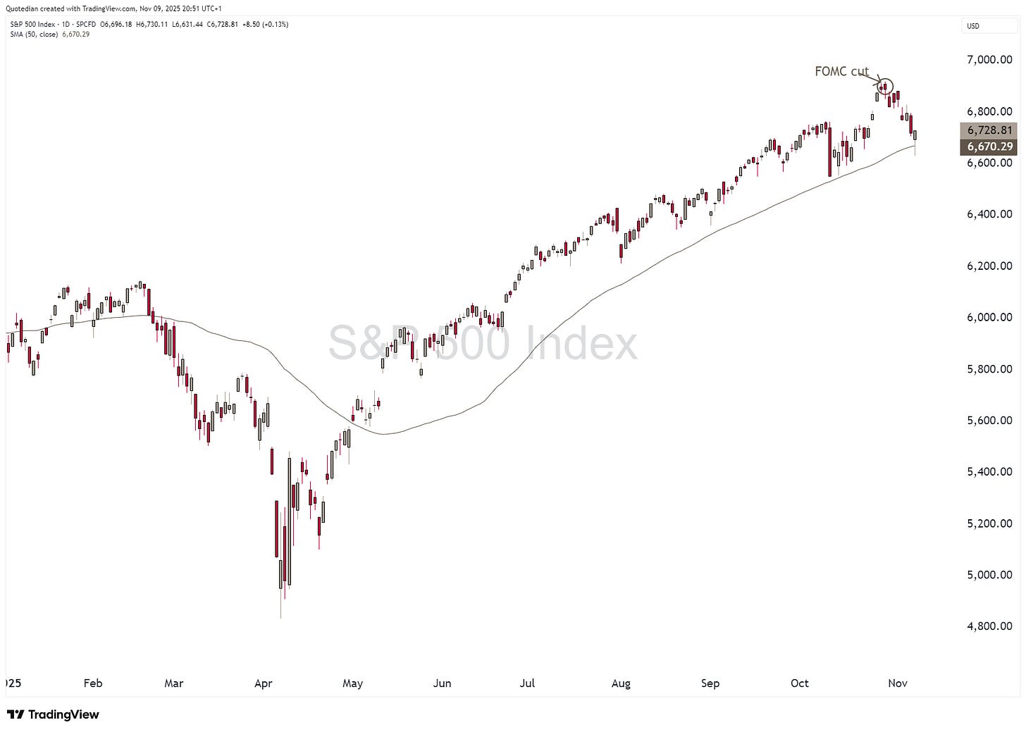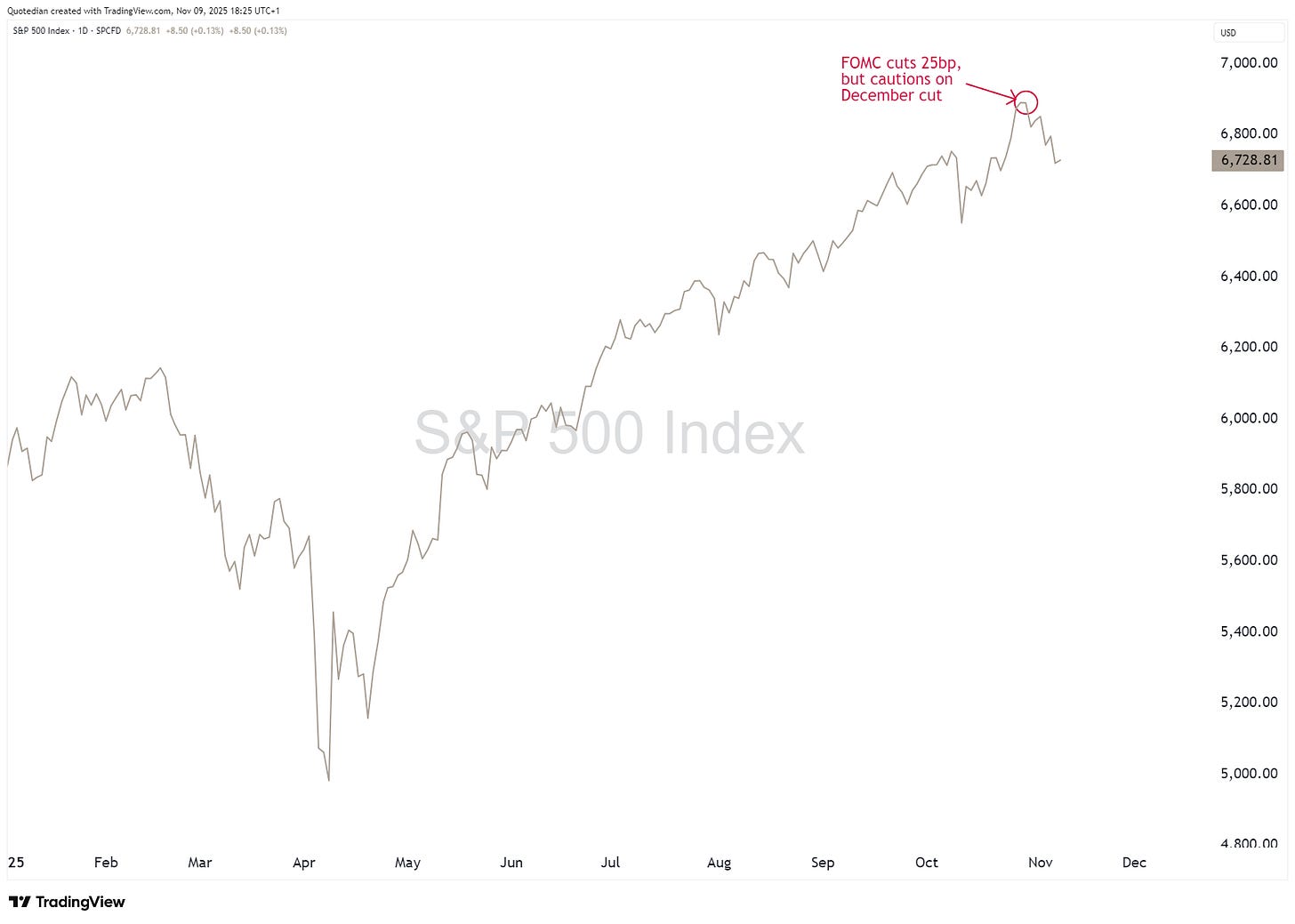 Now, since the Fed did its hawkish rate cut on October 29th, stocks have been wobbling: