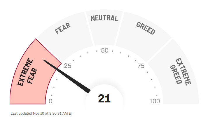 From a sentiment point of view, at least as indicated by CNN’s Fear and Greed index (click here for details), stocks may indeed have ‘hammered’ in a bottom on Friday: