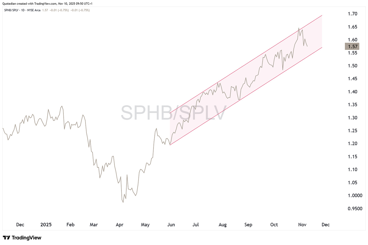 or the ratio between high beta (SPHB) and low volatility (SPLV) stocks,