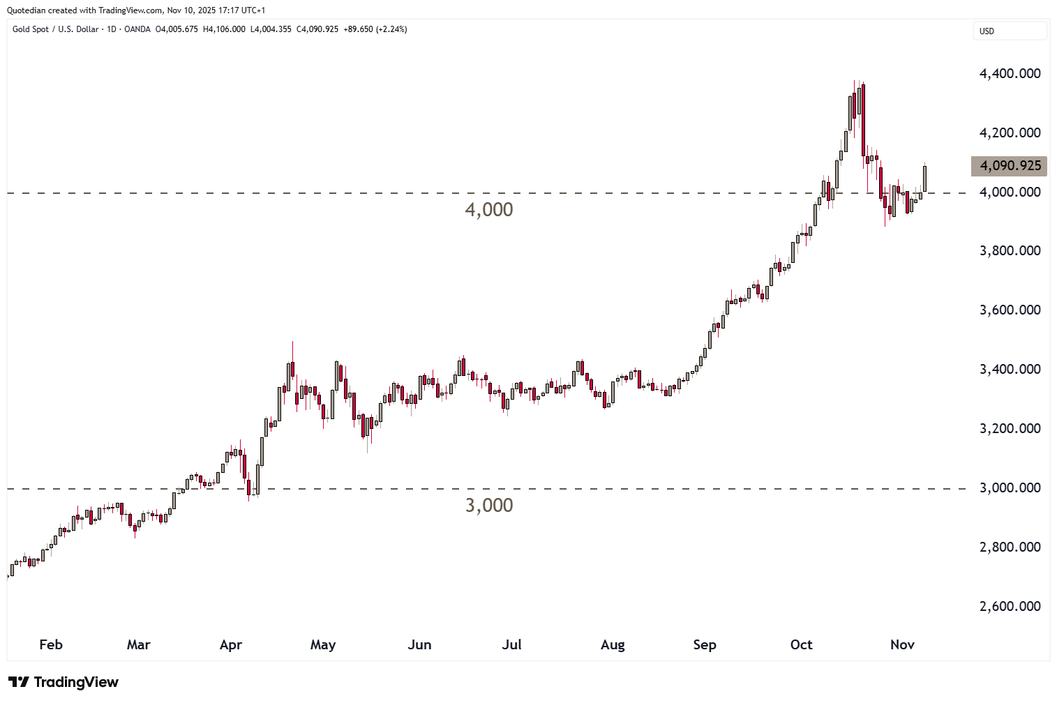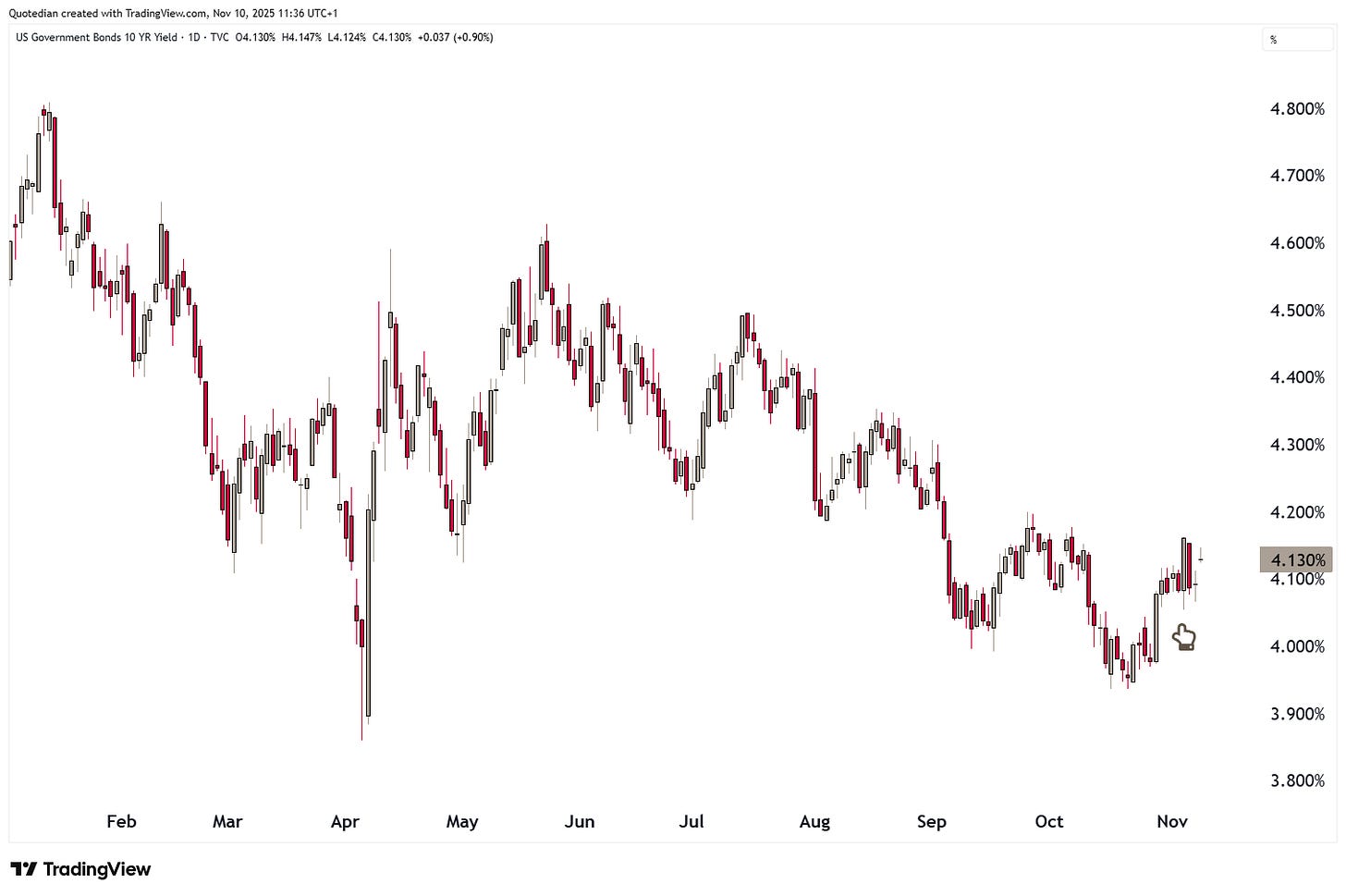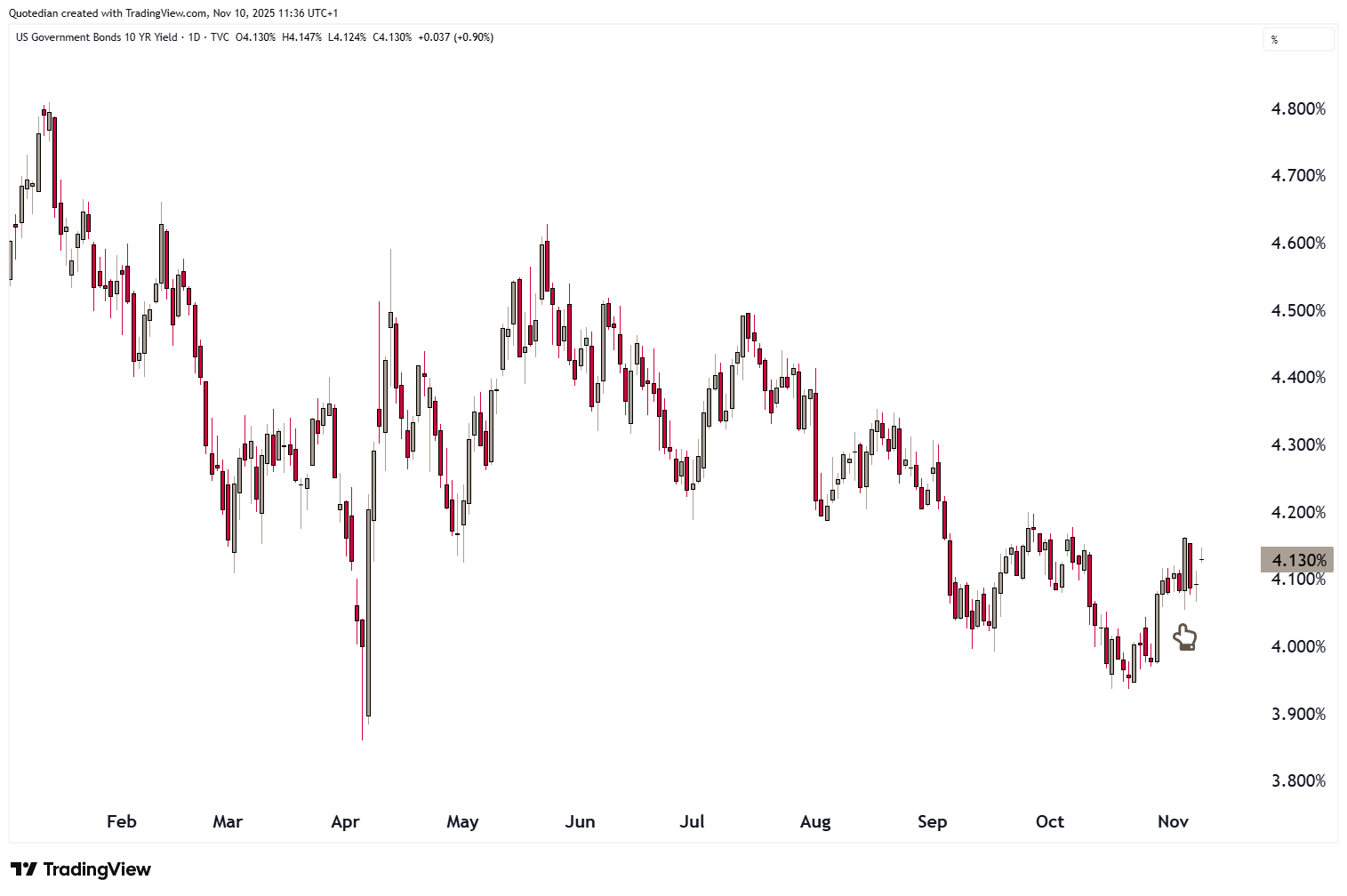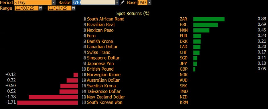 In the government bond market, US yields saw a jump higher last week, after the US Supreme Court considered the legality of Trump’s tariffs and a possible reversing of those would lead to less income for the US treasury. Here’s the cart of US 10-year treasury yield: