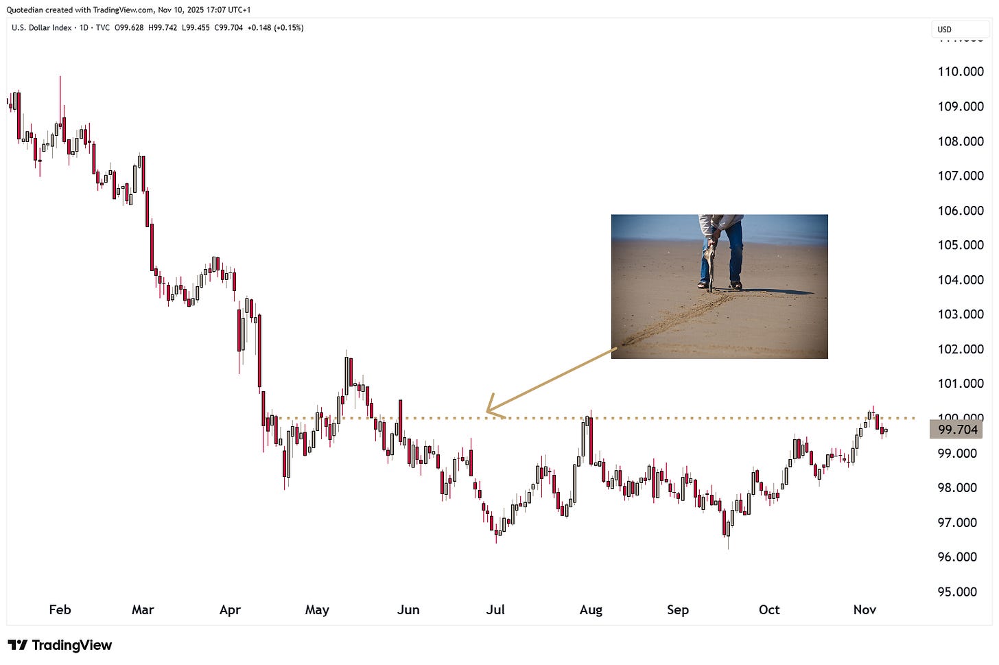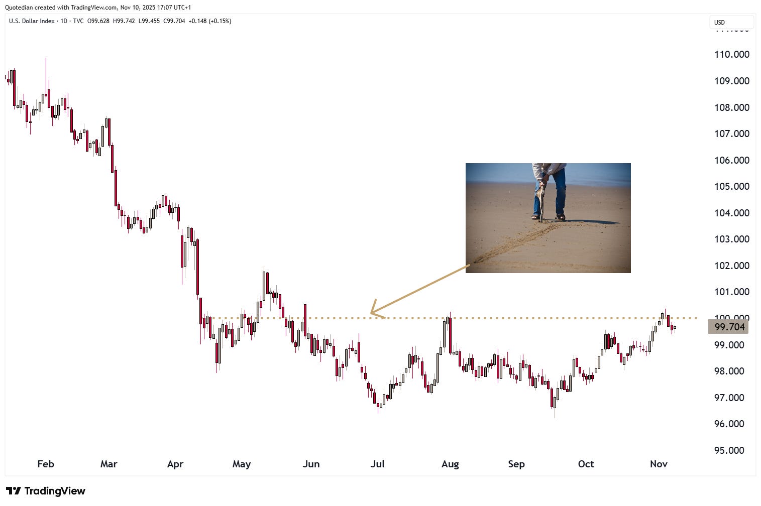 The Dollar Index itself briefly moved above our “line in the Sand” (aka key resistance), where we would have to review our bearish outlook on the Greenback, but failed to hold above and has been retreating again over the past few sessions: