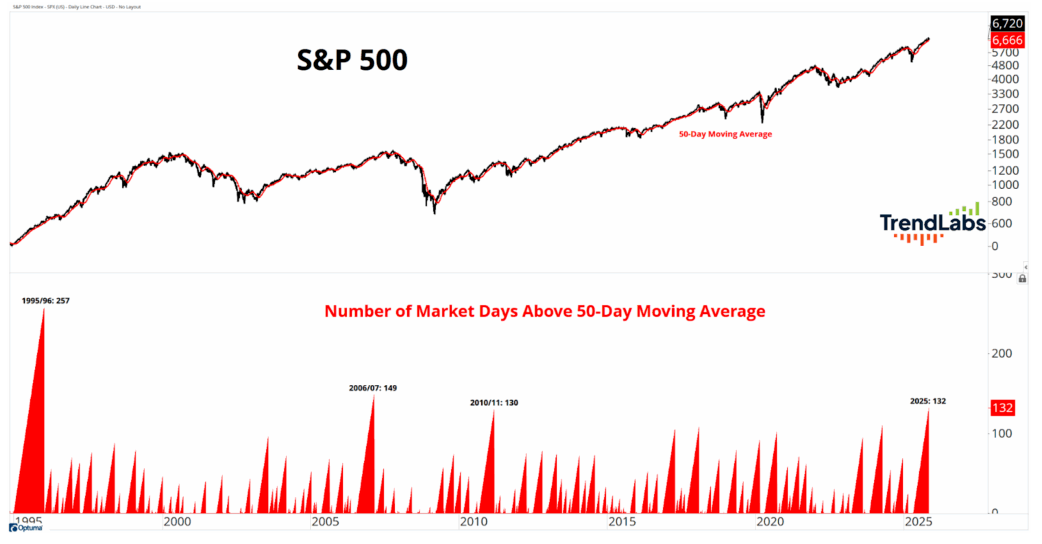 For starters, the S&P 500 continues (just about) its 4th-longest streak trading above the 50-day moving average over the past thirty years: