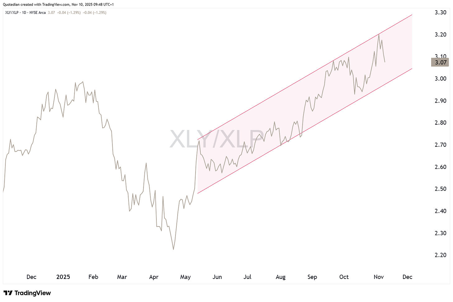Other, market derived indicators, such as the ratio between discretionary (XLY) and staples stocks (XLP),