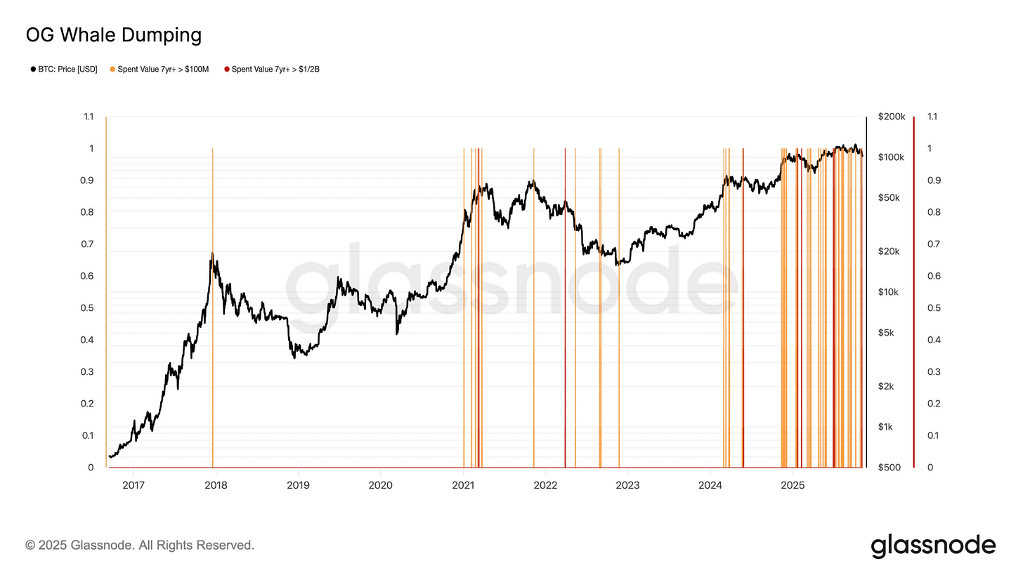 The counterargument (it is never easy, isn’t it) would be the chart below, which shows OG Whales (Original Gangsters, i.e. early large Bitcoin holders) have been increasingly dumping the Bitcoin positions (click here for story):