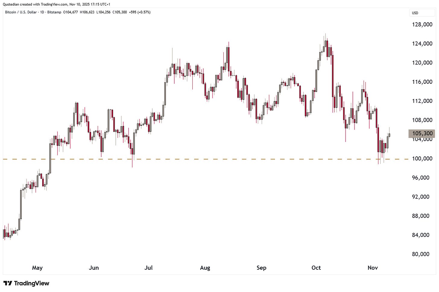 XBT/USD <100k … danger of drop to 75k, underweight