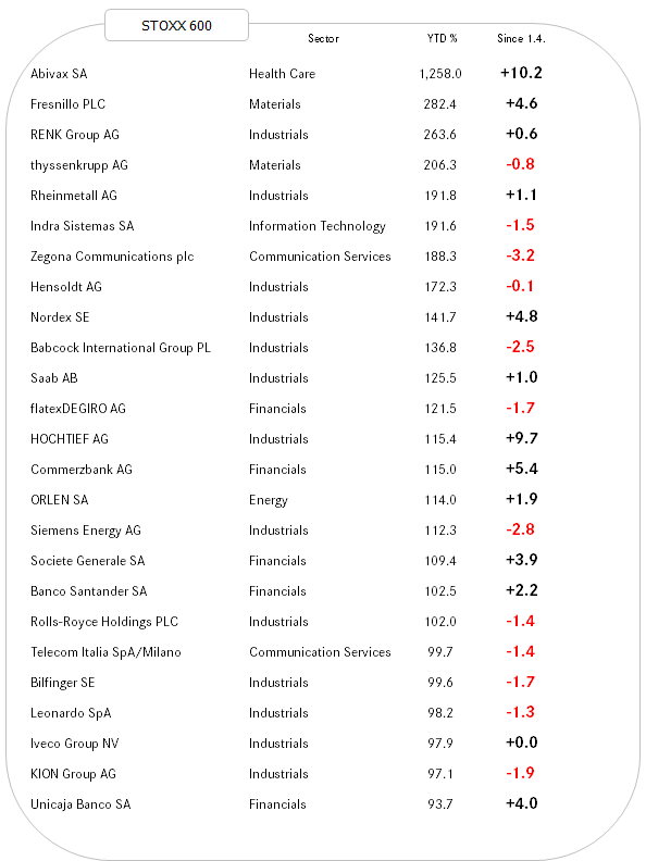 Quite precisely half of the stocks in the above table continued to add to their already healthy YTD gains last week. Those weaker on the week probably offer an interesting entry opportunity.