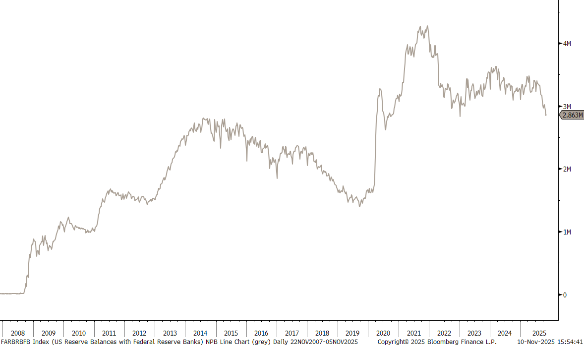 The US Reserve Balances with Federal Reserve Banks - this could be a bumpy ride until QT ends in December 1st: